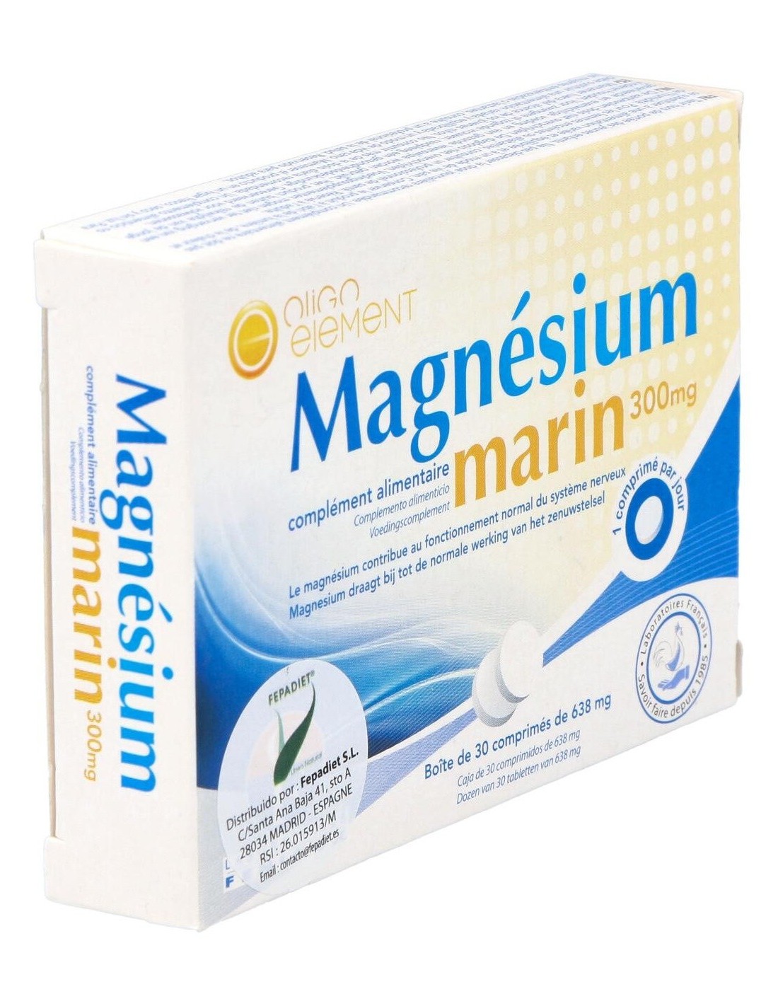 Óxido de magnesio de origen marino, agente de carga: celulosa microcristalina, emulsionante: estearato de magnesio, vitamina B6.