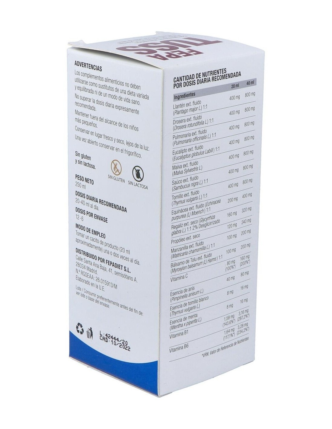 Formulado a partir de ingredientes de origen 100 % natural, sin conservantes y sin colorantes, recomendado para todos los tipos de tos (seca o productiva/con expectoración), adecuado para niños a partir de 6 años.