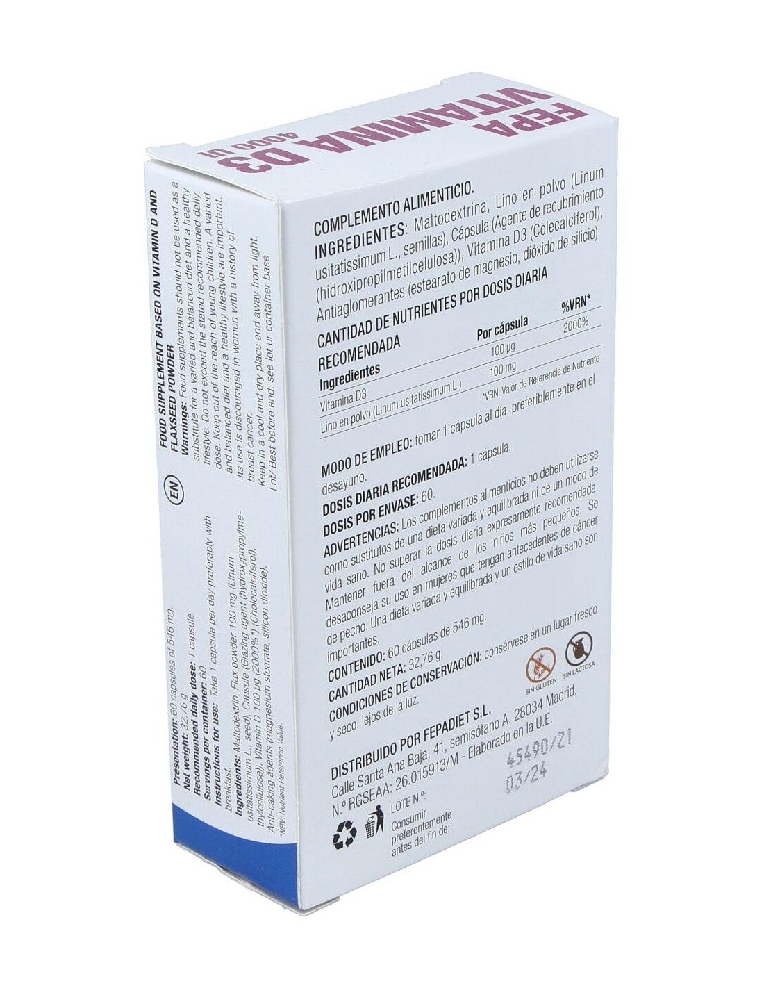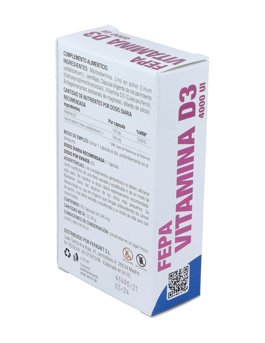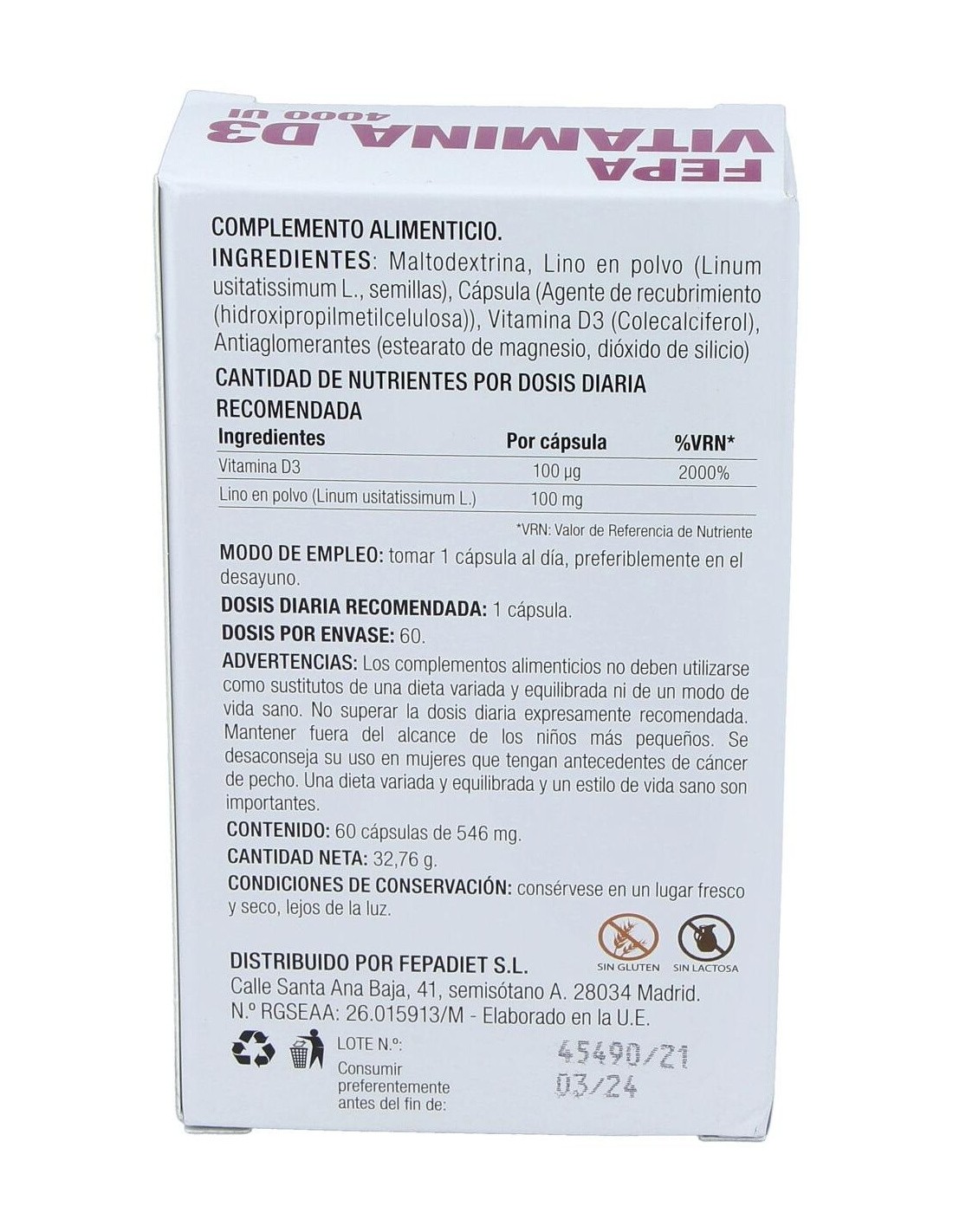 Fepa-Vitamina D3 4000Ui 60Cap. de Fepadiet