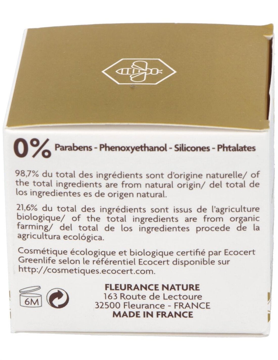 Este tratamiento hidratante y antiarrugas combina principios activos naturales con propiedades redensificantes con jalea real que goza de virtudes regeneradoras. Para todo tipo de pieles. Apto para vegetarianos.