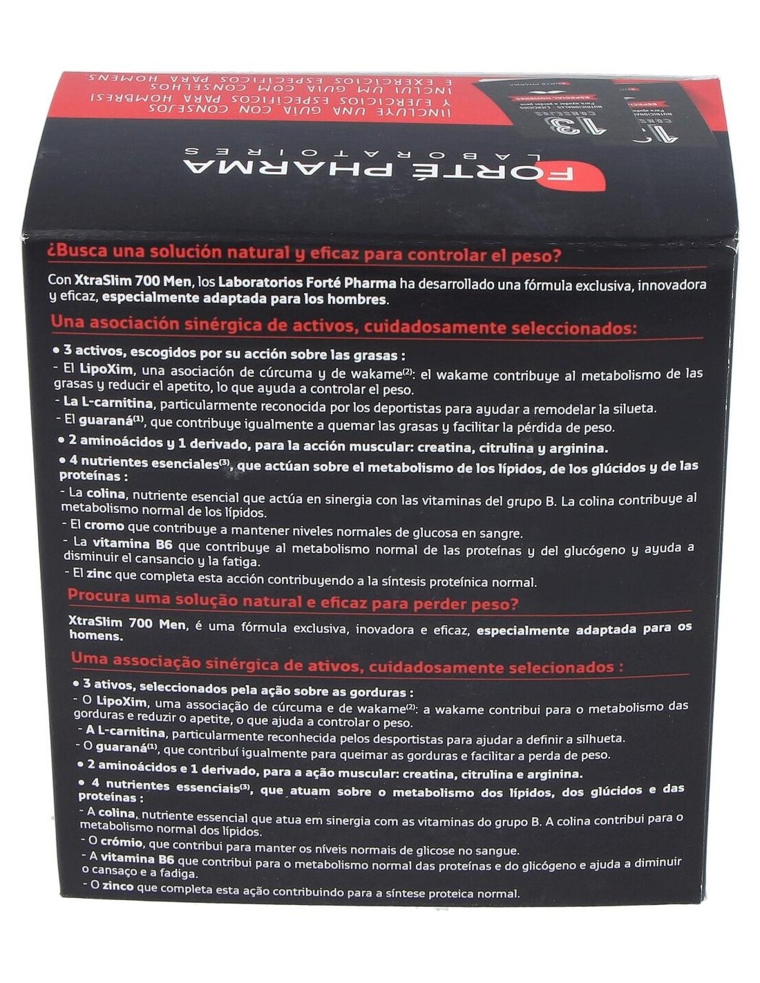 Forte Pharma Xtraslim 700 Men 120 Cap suplemento alimenticio en cápsulas que promueve la pérdida de peso de los hombres. Colabora a controlar nuestro peso manteniendo la masa muscular. Ideal para personas deportistas. Contiene 10 principios activos que tienen múltiples beneficios en la eficacia de perder peso.