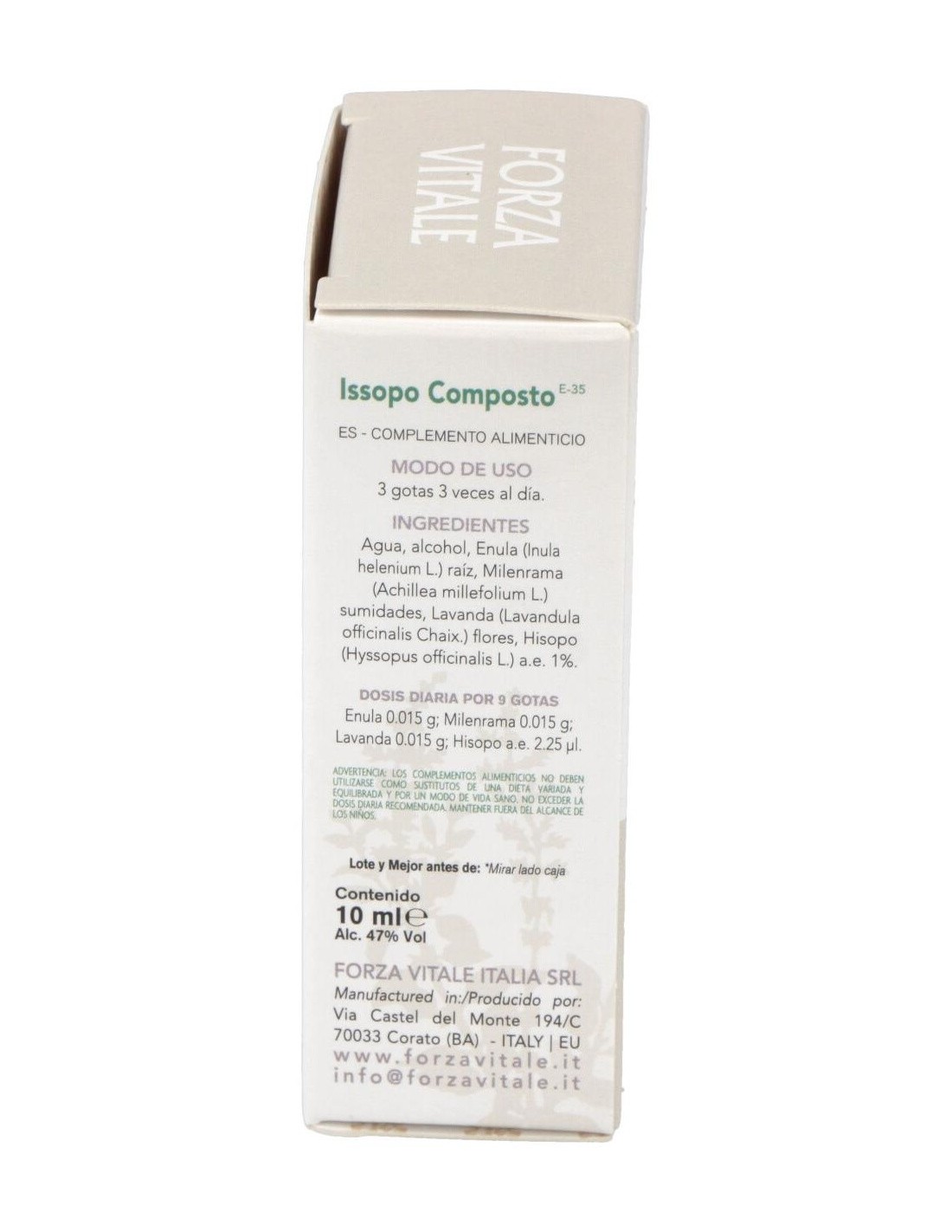 FORZA VITALEÚtil para favorecer el fisiológico bienestar de los bronquios. ISSOPO COMPOSTO (estaño) metal espagirico 10ml.