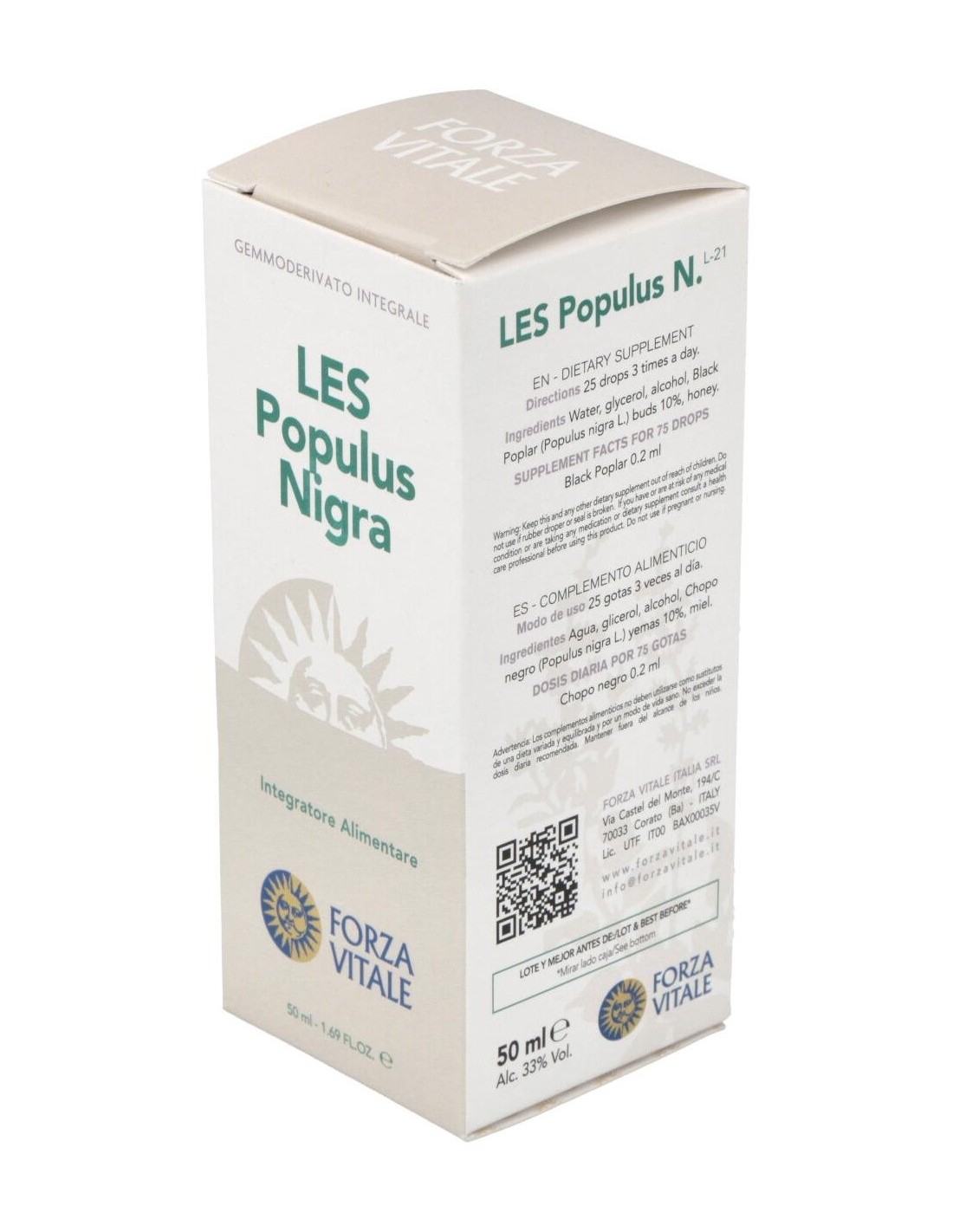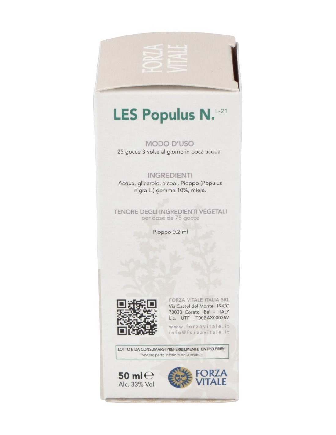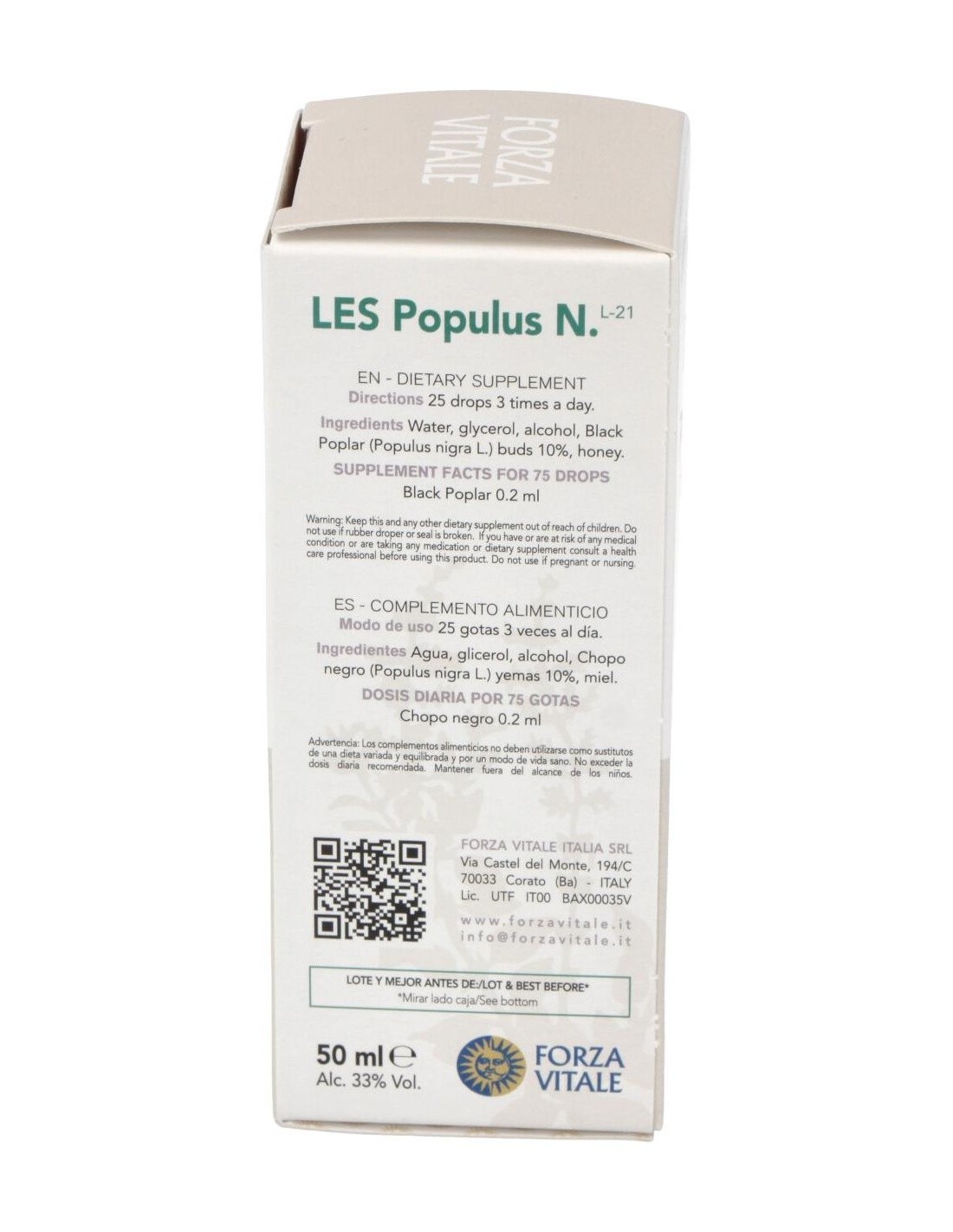 FORZA VITALEFavorece el fisiológico bienestar del aparato circulatorio. LES POPULUS NIGRA chopo negro 50ml.