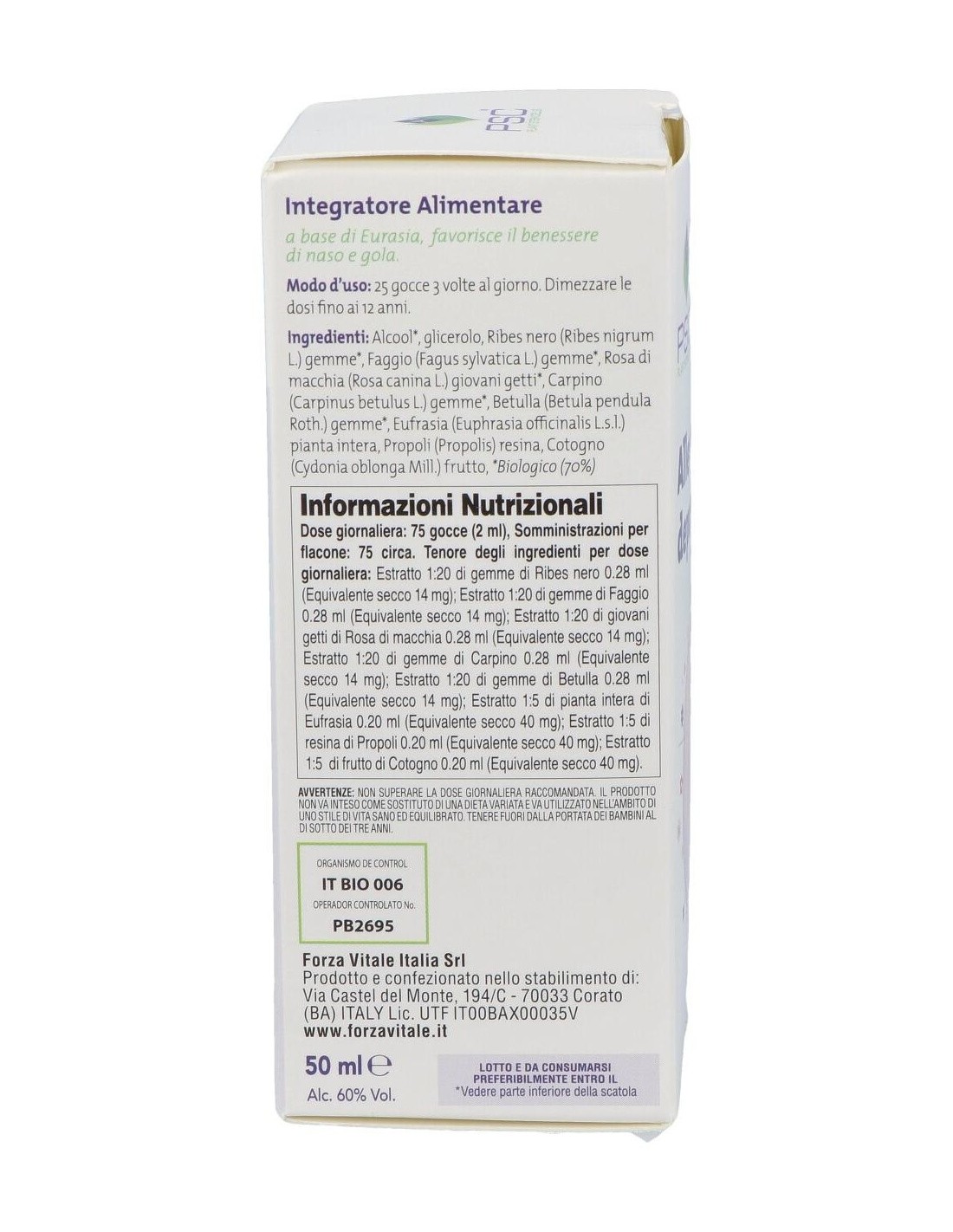 Grosellero negro 0.105 ml: Haya 0.105 ml: Rosal silvestre 0.105 ml: Carpino 0.105 ml: Abedul 0.105 ml: Eufrasia 0.075: Membrillo 0.075 ml: Propóleo 0.075 ml.