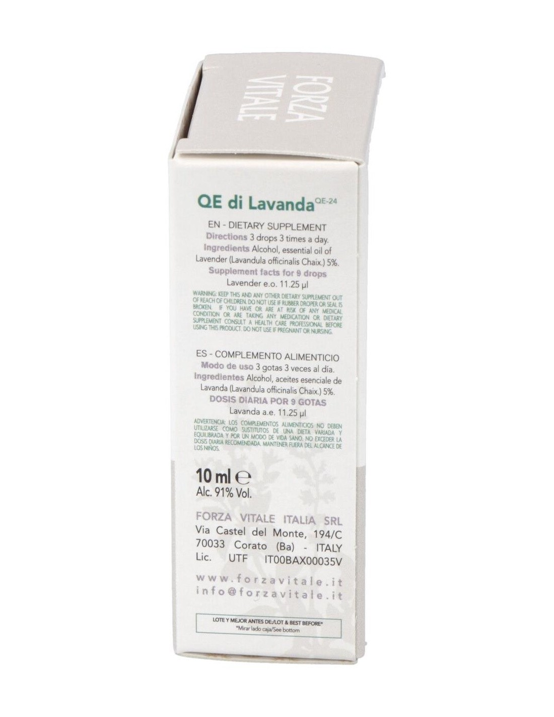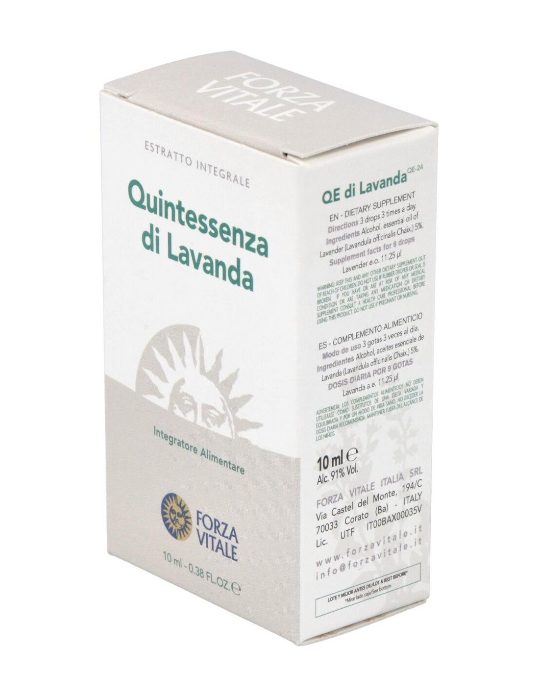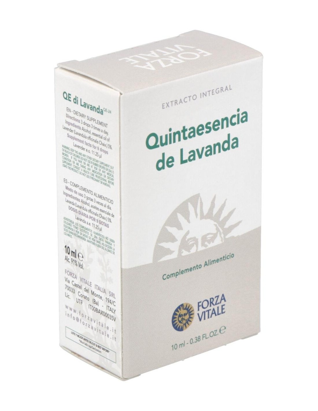 FORZA VITALEActúa sobre la relajación en caso de estrés. QUINTA ESENCIA LAVANDA (espliego) 10ml.