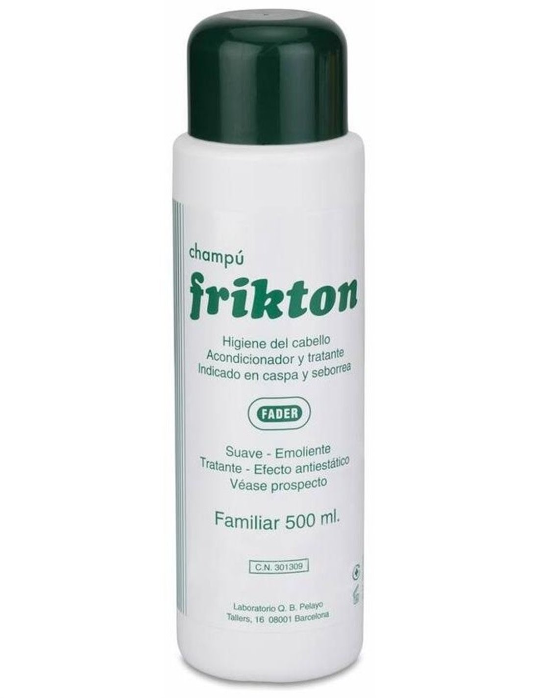 FRIKTONFrikton Champú es adecuado para todo tipo de cabello, porque la adición de sustancias acondicionantes, emulgentes y protectoras, respetan el Ph de las proteínas del cabello, así como el cuero cabelludo. En su composición hay agentes tensoactivos de gran afinidad dérmica por lo que presenta una excelente tolerancia. Su formulación le confiere una suave base tensoactiva que además de limpiar, da cuerpo a los cabellos excesivamente finos y frágiles. El Piroctone Olamine Es un activo agente que evita la excesiva descamación del cuero cabelludo causante de la caspa, disminuyendo el prurito que la acompaña. El uso continuado regenera progresivamente los cabellos débiles y quebradizos y contribuye a eliminar la caspa y la seborrea.