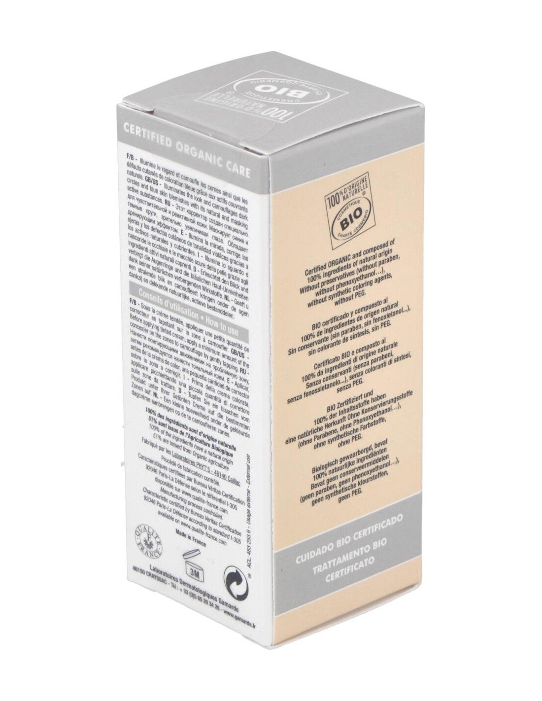 Tratamiento que corrige y camufla las ojeras gracias a sus colorantes de origen mineral.