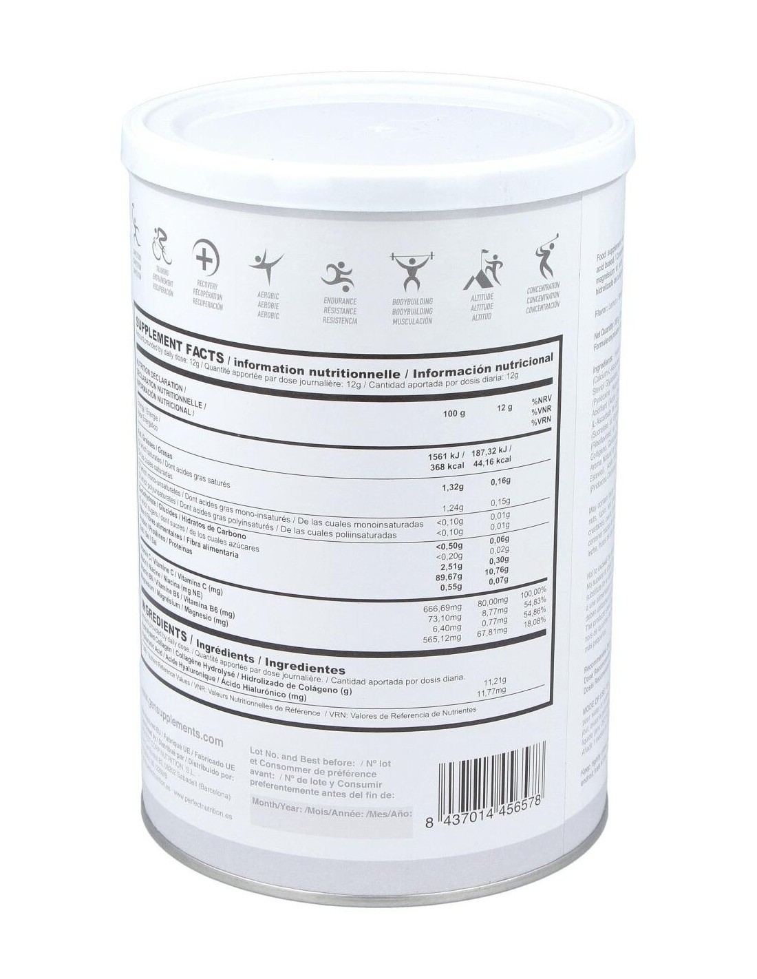 Formulado a base de colágeno hidrolizado bioasimilable, ácido hialurónico, magnesio y vitaminas C, B3 y B6, favoreciendo estas últimas una disminución del cansancio y la fatiga.