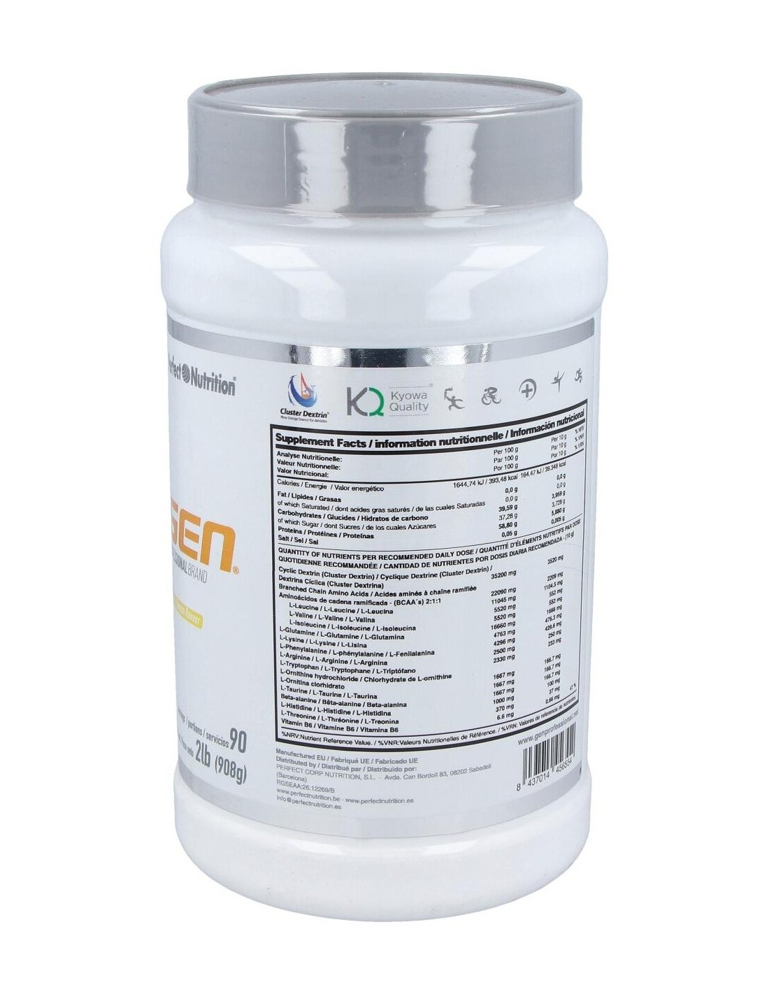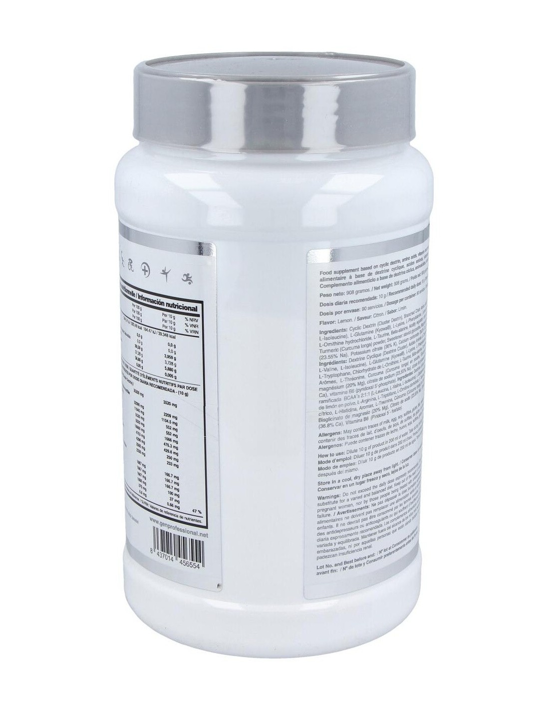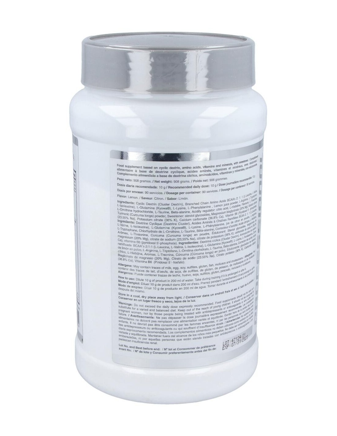 Dextrina cíclica (Cluster Dextrin), Aminoácidos de cadena ramificada BCAA´s 2:1:1 (L-Leucina, L-Valina, L-Isoleucina), L-Glutamina (Kyowa®), L-Lisina, L-Fenilalanina, Zumo de limón en polvo, L-Arginina, L-Triptófano, L-Ornitina clorhidrato, L-Taurina, Beta-alanina, Corrector de acidez: ácido cítrico, L-Histidina, Aromas, L-Treonina, Cúrcuma (Cúrcuma longa) en polvo, Edulcorante: glucósidos de esteviol, Bisglicinato de magnesio (20% Mg), Citrato de sodio (23.55% Na), Citrato potásico (36% K), Carbonato cálcico (36.8% Ca), Vitamina B6 (Piridoxal 5´- fosfato).