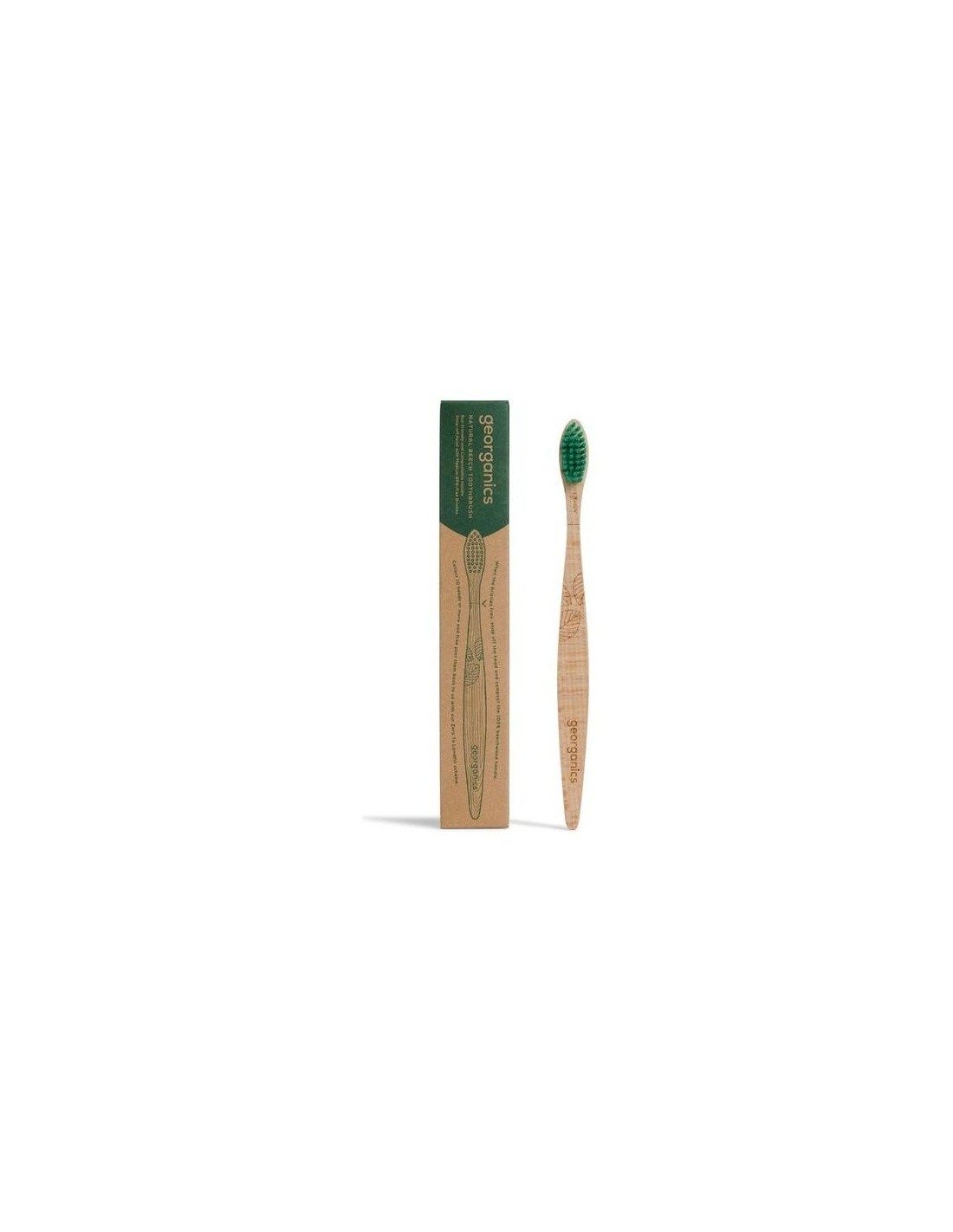 GEORGANICSEste cepillo de dientes proviene de un proveedor certificado por FSC, apto para compostaje doméstico. Cada árbol talado se vuelve a plantar y el material sobrante se utiliza para calentar la fábrica.