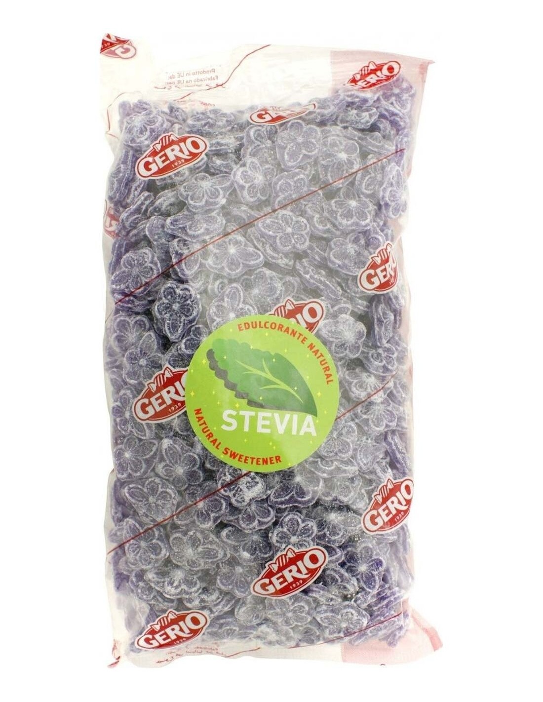GERIOCaramelo duro con edulcorantes, forma y sabor de violeta. Sin gluten y sin azúcar.
