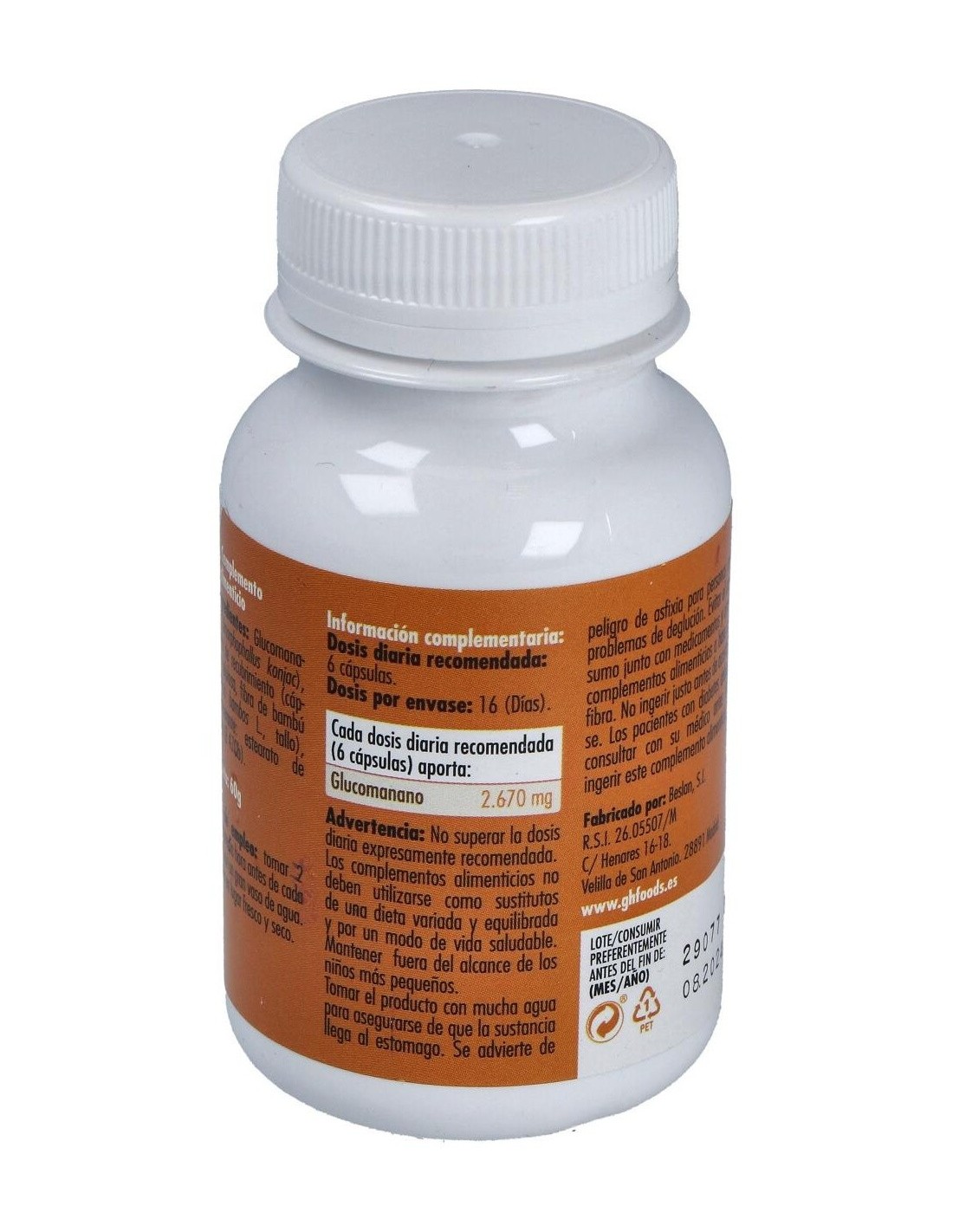 500mg de glucomanano en cápsula vegetal.