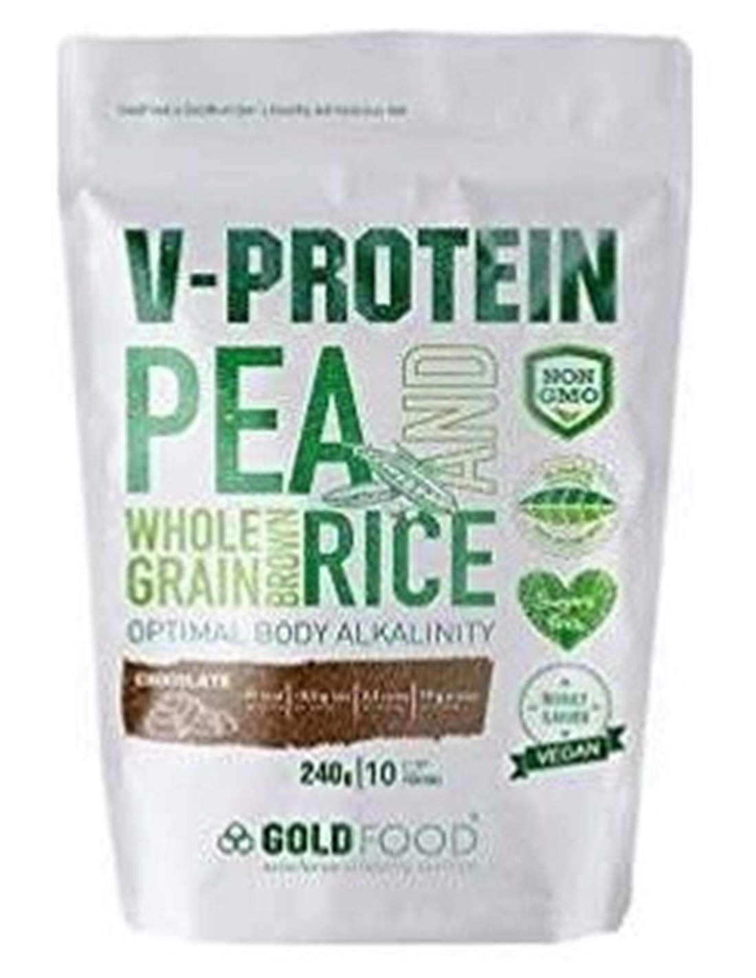 GOLD NUTRITIONVegan V-Protein GoldNutrition® es un producto rico en proteínas vegetales (72-78%) provenientes del guisante y del arroz, lo que permite que su composición incluya todos los aminoácidos esenciales para el organismo, sin azúcares añadidos, contiene menos de 1 g de azúcar por batido. Esta fórmula ha sido enriquecida con bromelina, una enzima natural extraída de la piña, que permite optimizar la digestión de las proteínas. Tiene efecto saciante y ayuda a controlar el apetito.