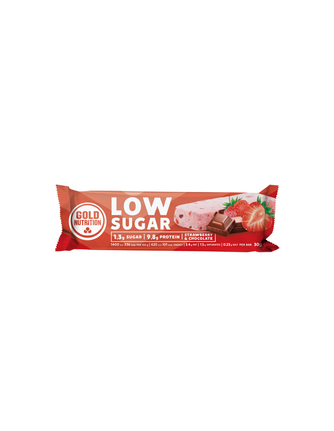 GOLD NUTRITIONEs una barrita hiperproteica, en la que destaca la inclusión de OPTIPEP® 4Bars (hidrolizado de proteína de suero de leche) que le otorga una mejor textura y sabor, teniendo una absorción más rápida y una mejor digestibilidad. Total Protein Low Sugar Covered GoldNutrition® también tiene un buen contenido de fibra que retrasará la absorción de nutrientes como el azúcar. Es saciante y su contenido en achicoria le otorga un efecto prebiótico.