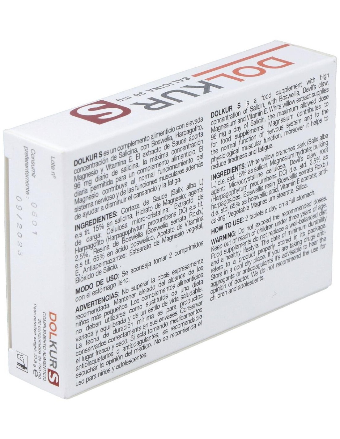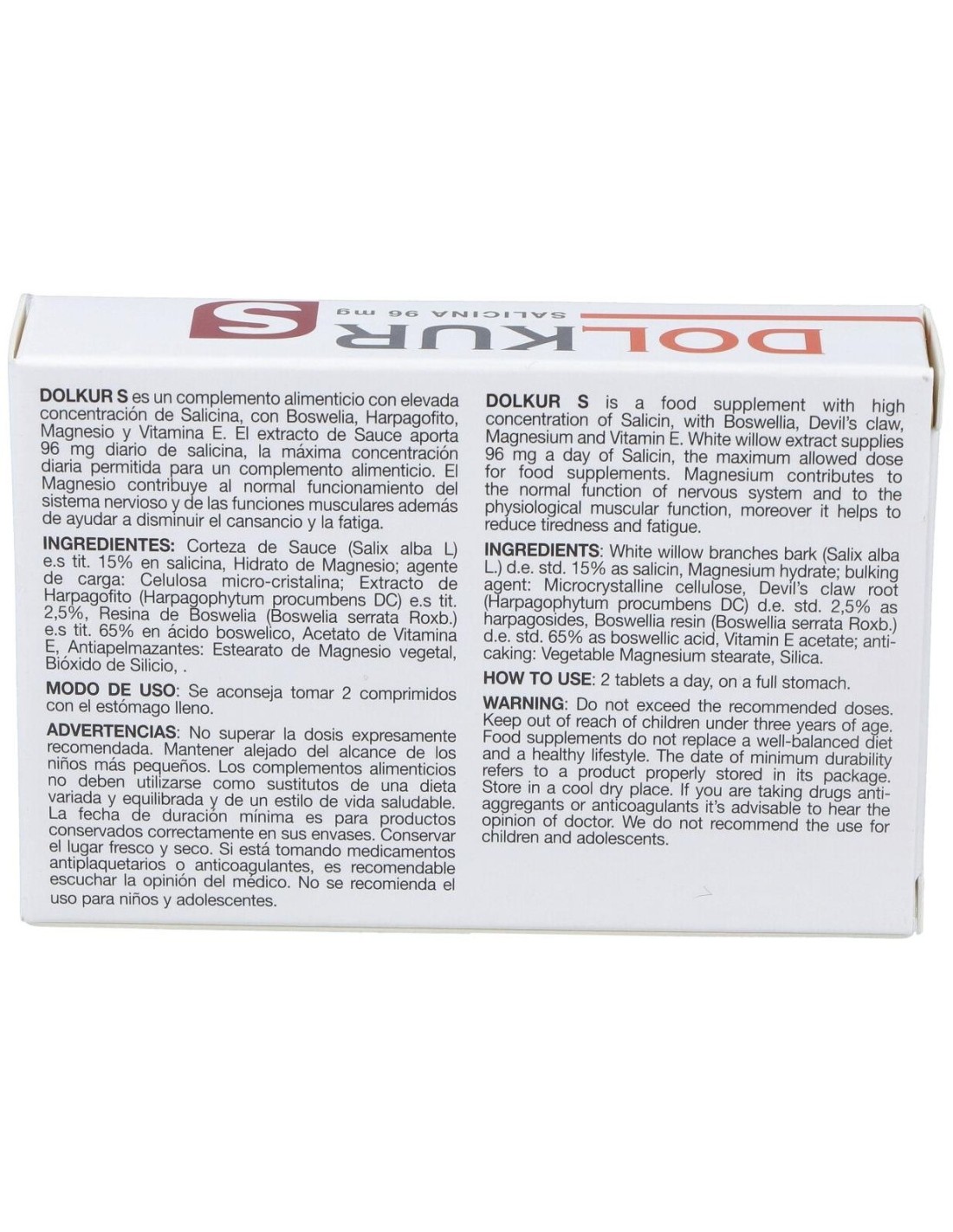 Sauce e.s tit. del cual Salicina, Harpagófito e.s tit. 2,5%, Boswelia e.s tit. 65%, Magnesio, Vitamina E.