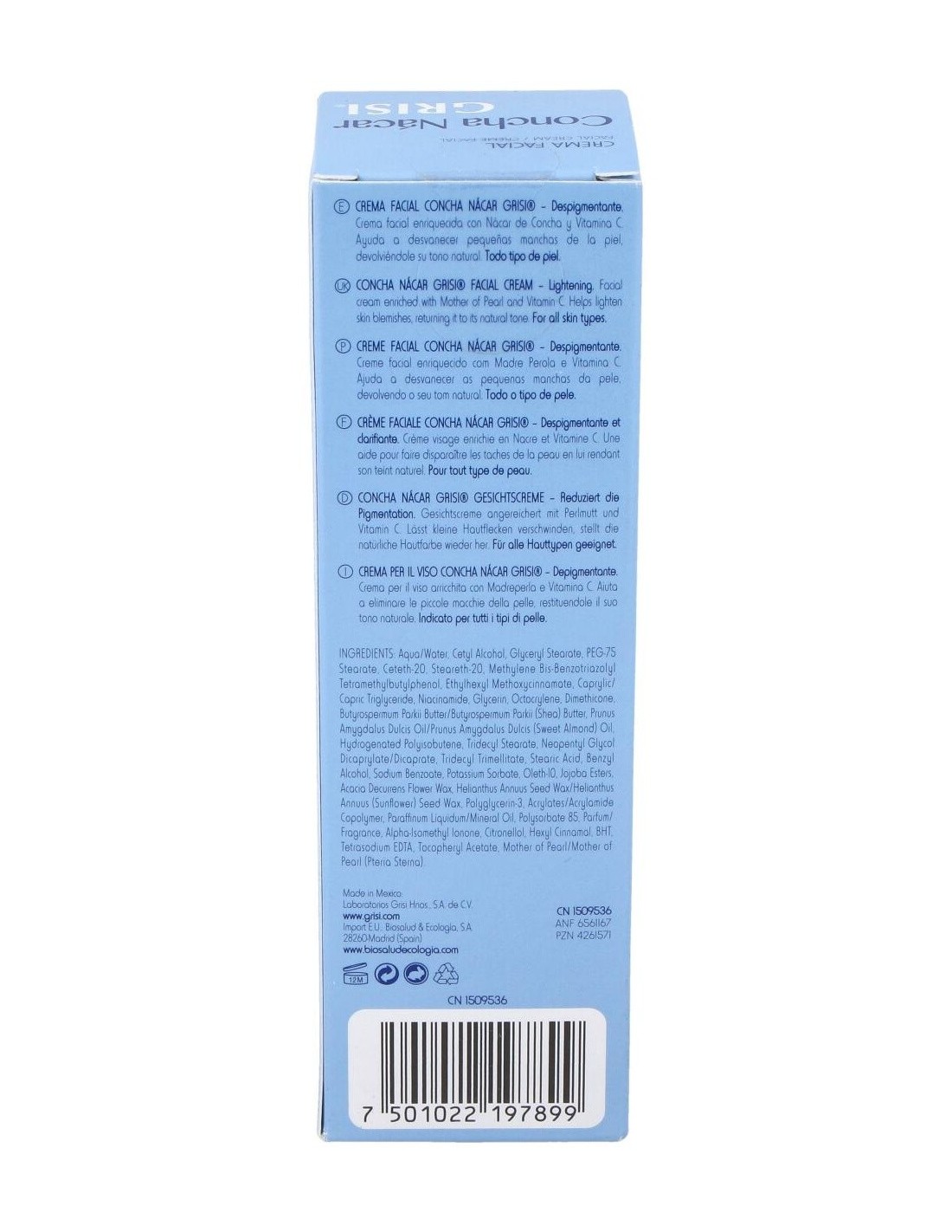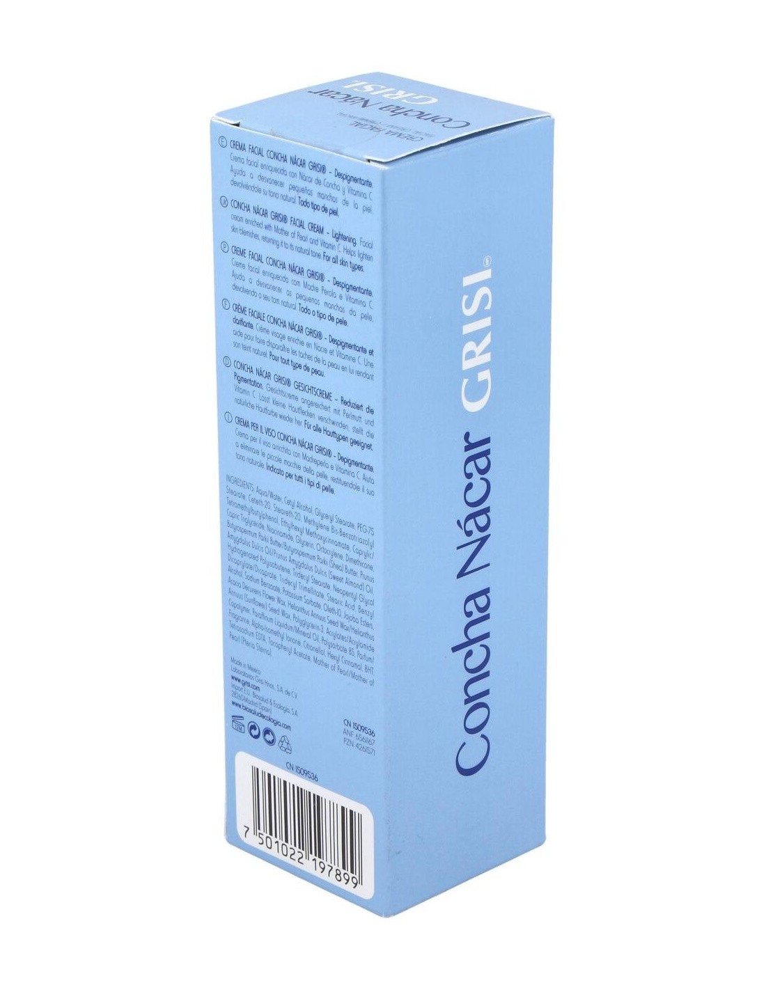 Grisi crema facial concha nacar regenerante es una crema facial despigmentante y regeneradora de la piel. Enriquecida a base de nácar de concha y vitamina c elimina manchas, pequeñas cicatrices y líneas de la piel.