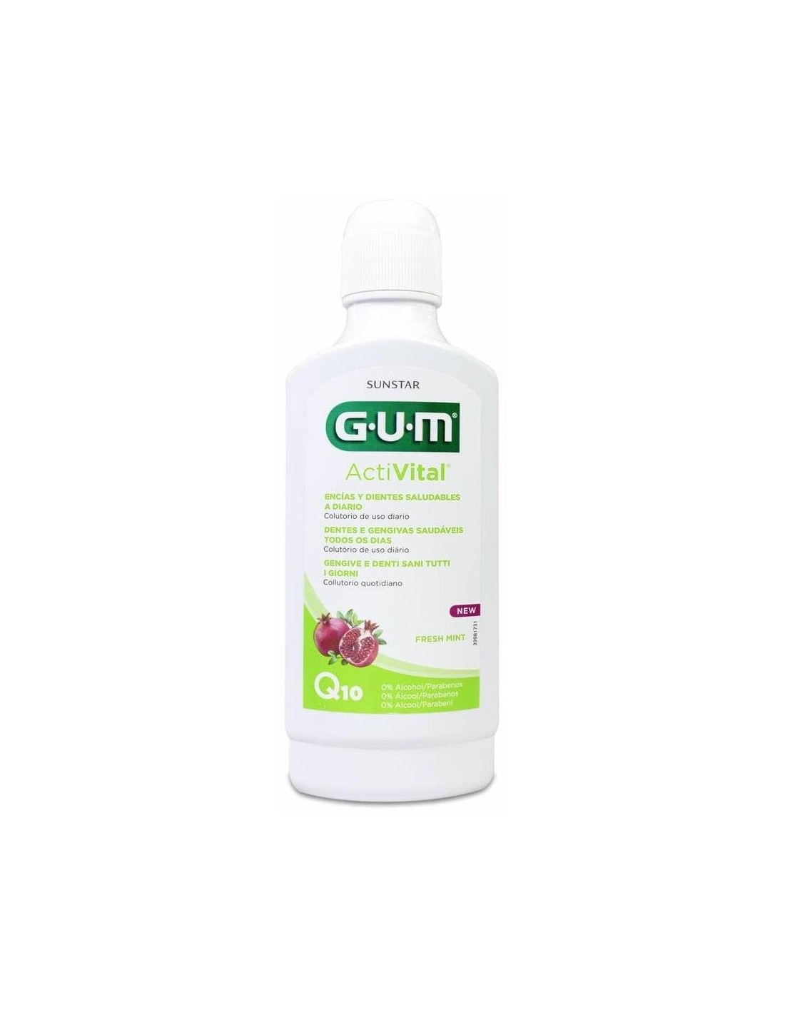Acción antioxidante gracias a la coenzima Q10 y al extracto natural de granada. Acción antiplaca gracias al innovador ingrediente LAE (etil lauroil arginato) que evita que las bacterias se adhieran a la superficie del diente. El flúor y el isomalt promueven la remineralización del esmalte y previenen la caries. Colutorio suave sin alcohol. Con jengibre y bisabolol calmantes para fortalecer las encías. Sabor a menta fresca.