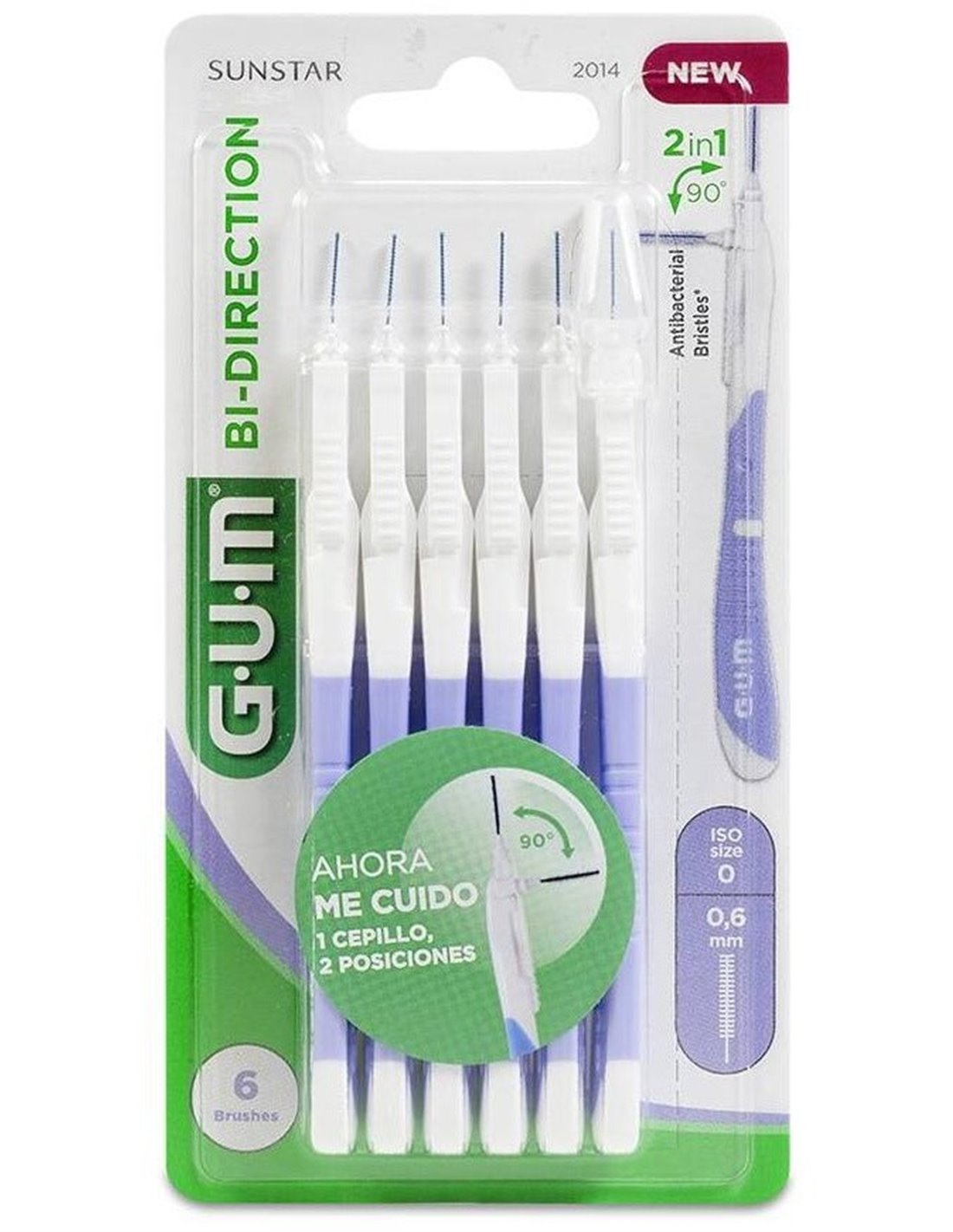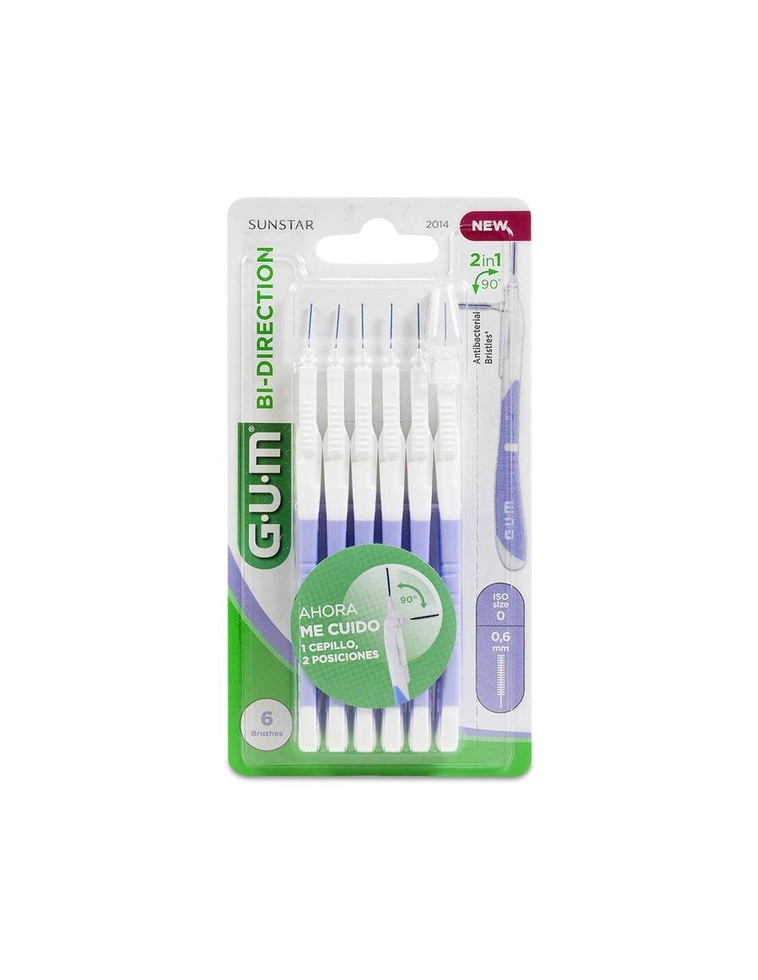 GUMEl cepillo interdental bidireccional GUM BI-DIRECTION ayuda a llegar de forma cómoda y fácil a todos los espacios interdentales. Gracias a la doble posición del cabezal en ángulo recto y de 90º elimina eficazmente la placa bacteriana y los restos de alimentos de los dientes frontales y posteriores. Además, los filamentos triangulares patentados de este cepillo interdental son capaces de eliminar hasta un 25% más de placa. También están recubiertos con clorhexidina, un eficaz antiséptico que impide que las bacterias se adhieran entre usos. Gracias a su mango ergonómico, alargado y antideslizante, los cepillos interdentales GUM BI-DIRECTION están especialmente indicados con puentes o implantes o en caso de padecer algún problema de manejo o movilidad (artritis o artrosis, por ejemplo).