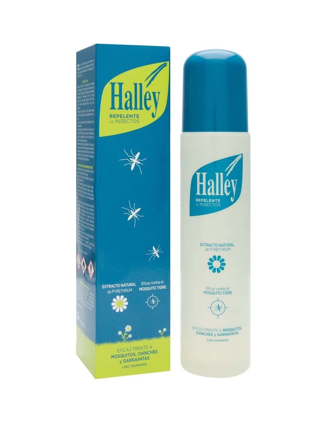 Halley repelente de insectos 250ml es un spray antimosquitos y repelente de insectos que aprovecha las propiedades del extracto natural de pirethrum, obtenido de una flor del tipo crisantemo llamado piretro. Ayuda a alejar a los mosquitos y otros insectos y evitar así sus picaduras y las molestias que conllevan.