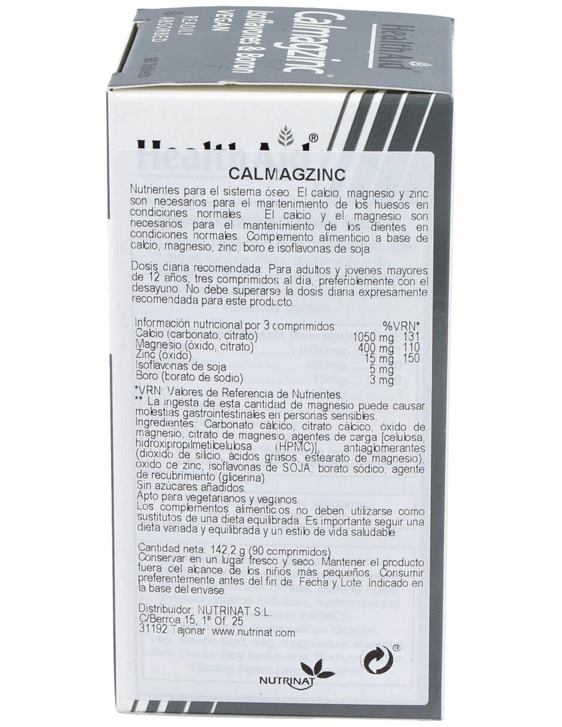 Complemento alimenticio a base de calcio, magnesio, zinc, boro e isoflavonas de soja. Apoyo nutricional para ayudar a mantener un sistema óseo saludable. Apto para vegetarianos y veganos.