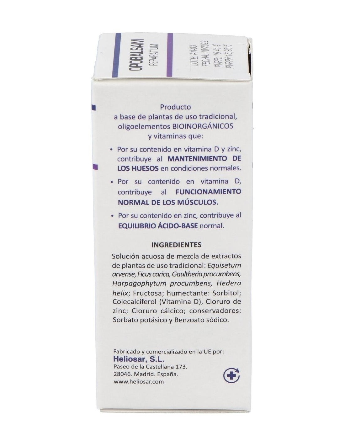 Complemento alimenticio en forma de solución acuosa para tomar en forma de gotas. Elaborado con plantas de uso tradicional, vitamina D, calcio y zinc, que en su combinación ayudan a rehabilitar las funciones del aparato locomotor.