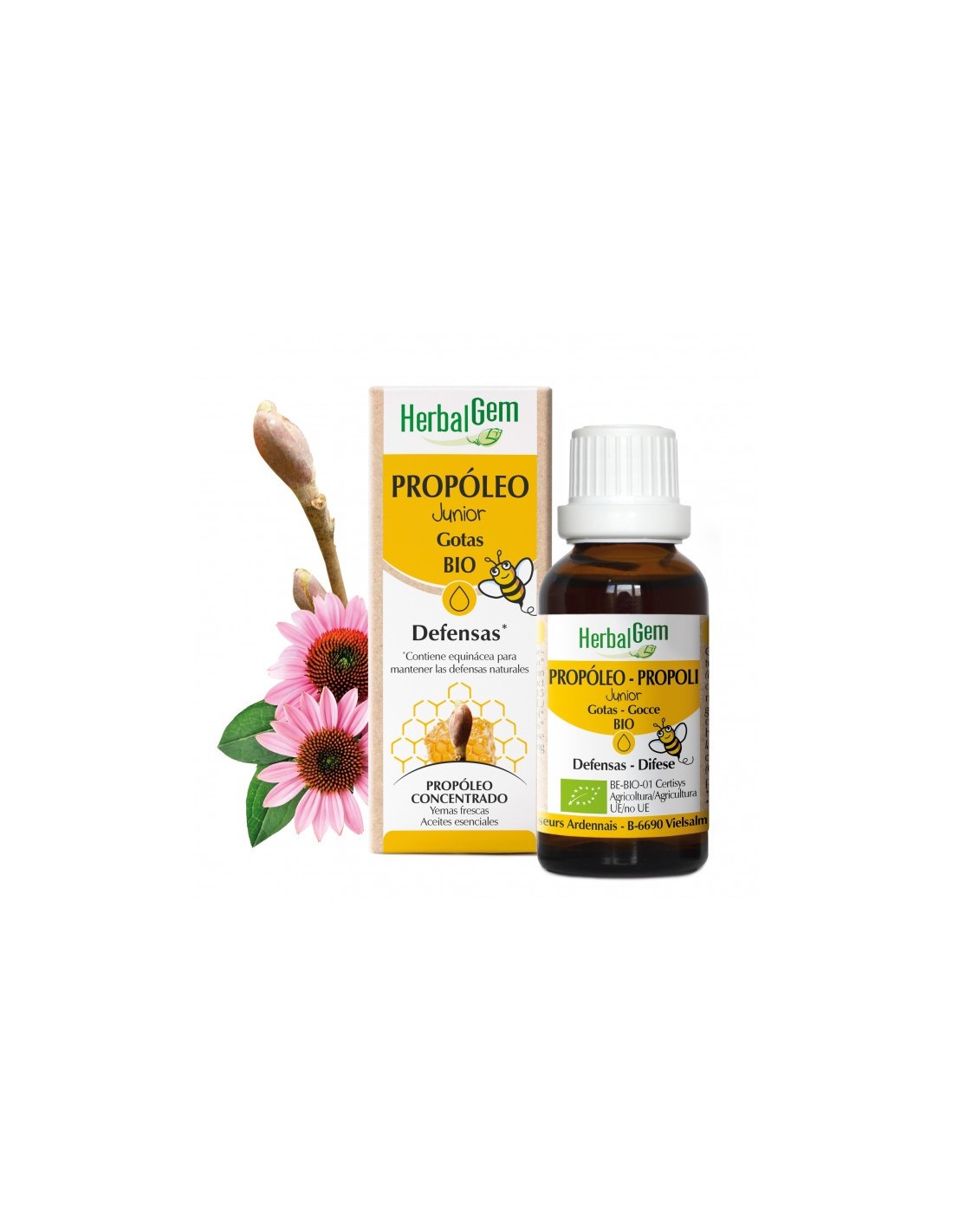 Herbalgem Propóleo Junior Jarabe Bio 15ml es un jarabe infantil elaborado a base de un concentrado de própolis, que combinado con su contenido en énula, equinácea y saúco ayuda a proteger y reforzar las vías respiratorias y las defensas naturales del organismo.