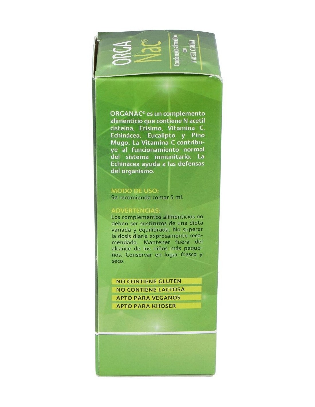 Los principios activos que lleva la formulación del Organac actúan despolimerizando los complejos mucoproteicos de la secreción mucosa disminuyendo su viscosidad y fluidificando el moco: activa el epitelio ciliado, favoreciendo la expectoración: además tiene una acción como citoprotector del aparato respiratorio y antiinflamatoria-relajante de las vías respiratorias altas. Por otra parte también actúa reforzando las defensas del organismo.