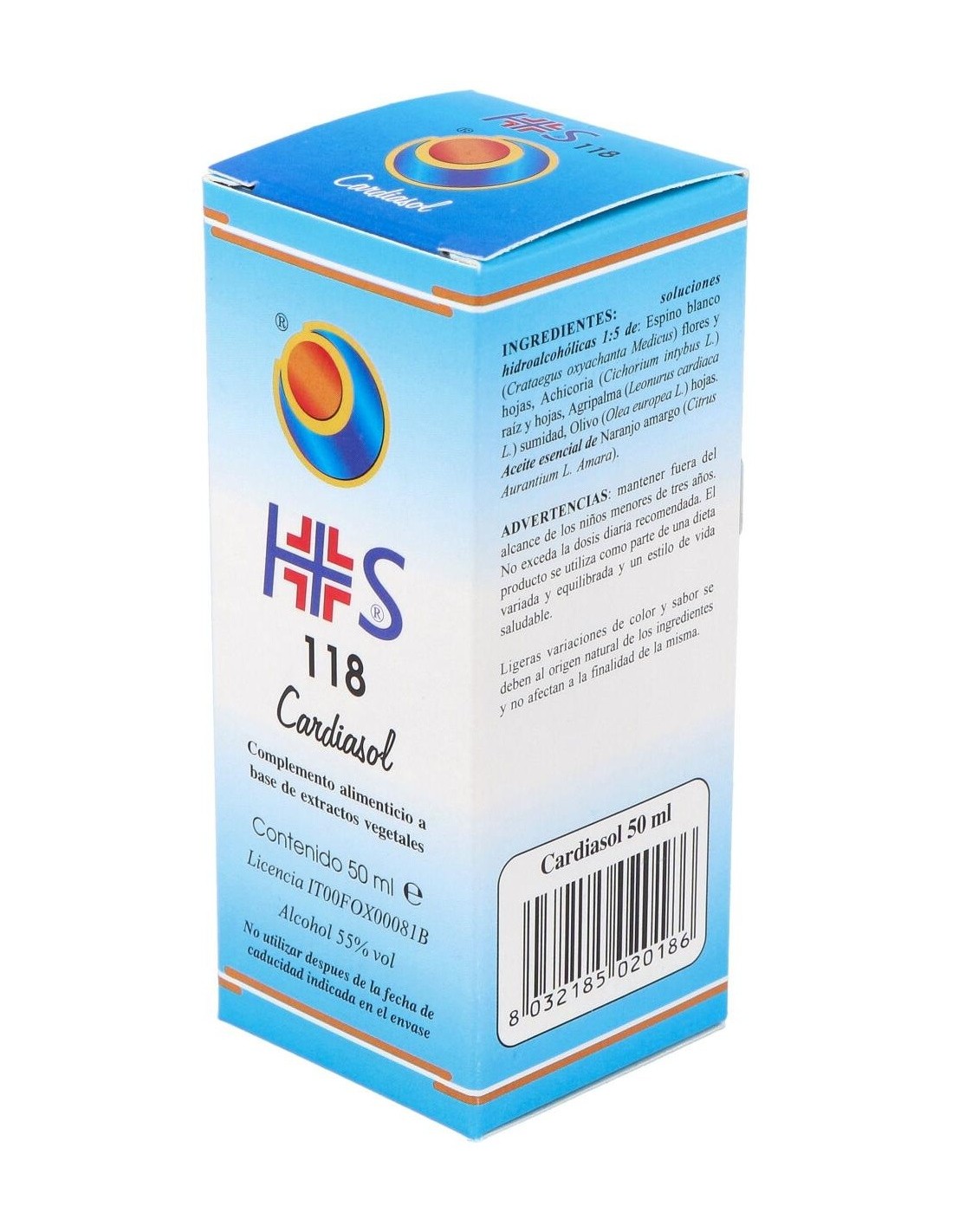TSA (Tintura Espagírico-Alquímica de Solanimus R.E. 1/5) de: Espino Albar (Crataegus oxyacantha Medicus) flores y hojas 3,15 g, Achicoria (Cichorium intybus L.) raíz y hojas 1,05 g, Cardiáca (Leonorus cardiaca L-) sumidades 0,63 g, Olivo (Olea europaea L.) hojas 0,315 g. QSPC (QuintaEsencia Espagírica de Paracelso Canónica) de Naranjo Amargo (Citrus aurantium var. Amara) flores 0,105 g.