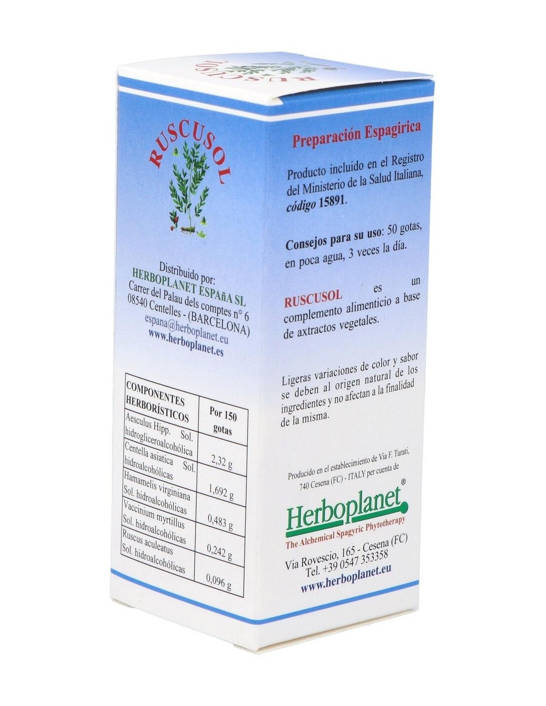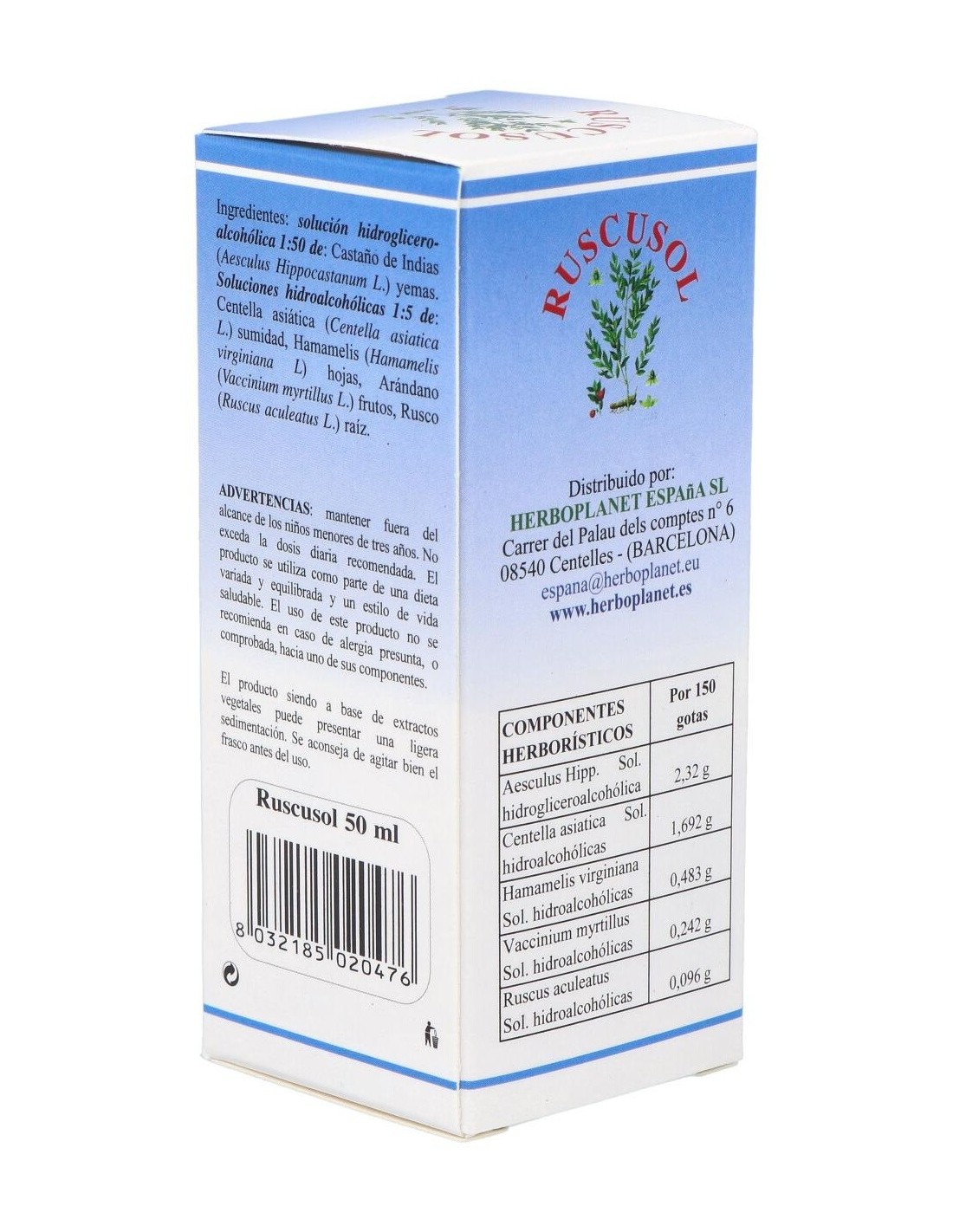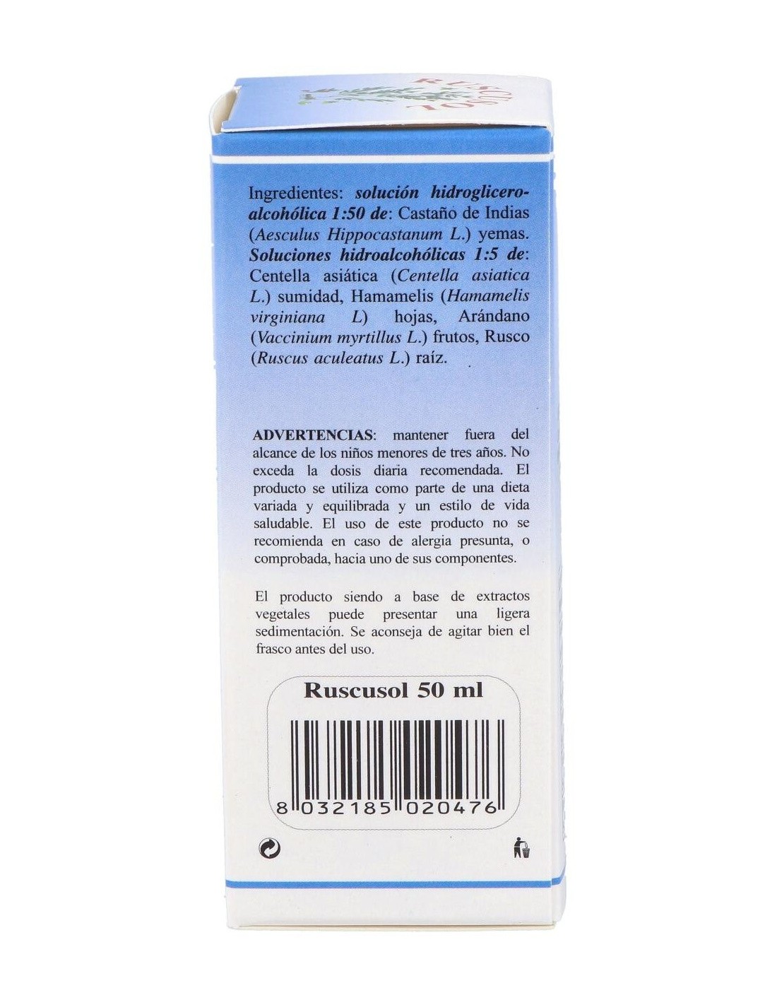 MSA (Macerado Espagírico-Alquímico) de Castaño de Indias (Aesculus Hippocastanum L.) yemas 2,320 g. TSA (Tintura Espagírico-Alquímica) 1:5 de: Centella asiática (Hydrocotile asiatica L.) sumidad 1,692 g, Hamamelis (Hamamelis virginiana L.) hojas 0,483 g, Arándano (Vaccinium myrtillus L.) frutos 0,242 g, Rusco (Ruscus aculeatus L.) raíz 0,096 g.