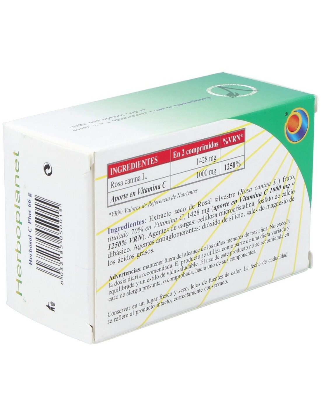 Extracto seco de Rosal silvestre (Rosa canina) frutos, titulada al 70% en vitamina C 1428 mg (aporte en Vitamina C natural 1000 mg). Agentes de carga: celulosa microcristalina, fosfato de calcio dibásico. Antiaglomerantes: sales de magnesio de los ácidos grasos, dióxido de silicio.