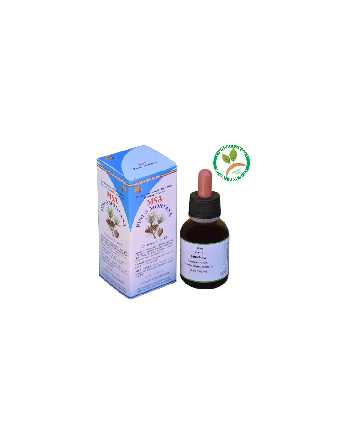 Solución hidro-gliceroalcohólica Espagirica con una relación de extracción de 1:50 (R.E. 1/50) de Pino de montaña (Pinus montana Mill.) brotes jóvenes 3,6 g.