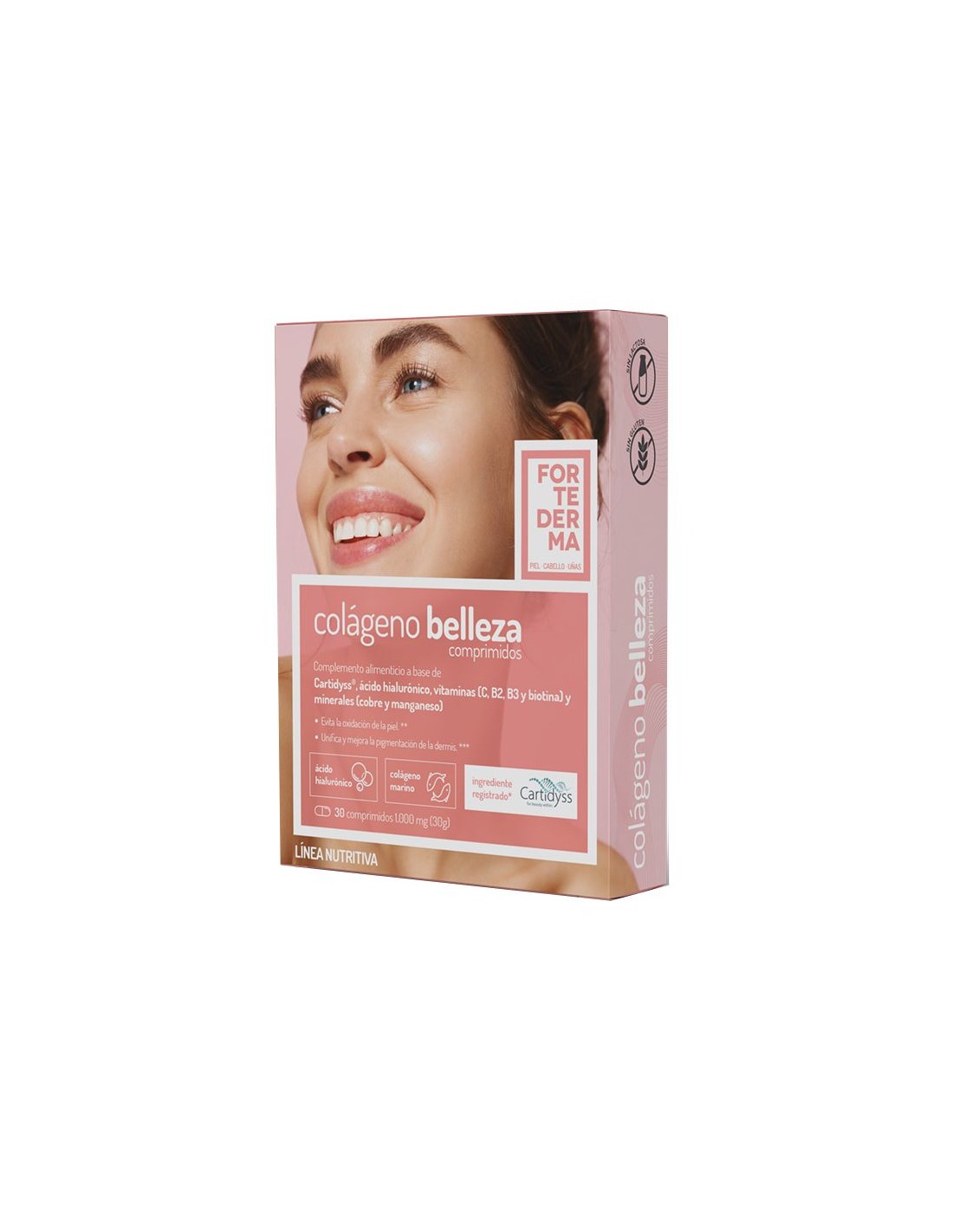A pele deve ser cuidada, por dentro e por fora, para mantê-la saudável e hidratada ao longo dos anos. É o reflexo do nosso interior e devemos protegê-lo. Uma rotina facial e corporal correta combinada com suplementos alimentares adequados, como os comprimidos de Beauty Collagen, ajudará a obter uma pele nutrida, macia e firme. A pele é o maior órgão do corpo que está constantemente exposto a agentes externos como calor, frio, poluição, bactérias, entre outros. Esses fatores afetam diretamente nossa pele, acelerando o envelhecimento precoce, causando unhas enfraquecidas e cabelos mais quebradiços e opacos. Infelizmente, a produção de colágeno começa a diminuir após os 25 anos de idade, então os comprimidos Collagen Beauty funcionam de dentro para fora, fornecendo a quantidade diária necessária de nutrientes para uma pele saudável e bem cuidada. É um suplemento alimentar à base de Cartidyss®, (colágeno de arraia de origem marinha com estudos clínicos), ácido hialurônico, vitaminas e minerais que participam da formação de colágeno e elastina, bem como da regeneração celular, auxiliando na redução de rugas e linhas de expressão , melhorando o tom e a textura da pele. Desta forma, será alcançada uma pele hidratada, macia e unificada. Princípios ativos: Cartidyss: Combina proteínas de colágeno de origem marinha (ray) e glicosaminoglicanas "GAG's" (condroitina, glucosamina, ácido hialurônico) que intervêm no envelhecimento da pele, mantendo a estrutura da pele e suas propriedades (hidratação, viscoelasticidade, etc.). Ácido Hialurônico: Tem a capacidade de atrair e reter água, melhorando assim a hidratação. Participa na regeneração celular e contribui para a regeneração da epiderme e dos tecidos conjuntivos. Vitamina C: Combate o envelhecimento da pele aumentando a síntese de colágeno. Reduz linhas de expressão e rugas, minimiza a vermelhidão da pele e restaura a elasticidade da pele. Vitamina B2: Com propriedades regeneradoras da pele. Possui ação antioxidante, neutraliza os radicais livres, limitando assim o estresse oxidativo que favorece o envelhecimento. Vitamina B3: Contribui para unificar o tom da pele. Melhora a capacidade de retenção da humidade epidérmica e contribui assim para a manutenção de uma hidratação adequada da pele. Biotina (vitamina H): Previne problemas de pele como dermatite ou psoríase, pois pode regenerar os tecidos. Promove elasticidade e hidratação e ajuda a ter um aspecto macio e aveludado da pele. Cobre: Essencial na formação da melanina e das fibras de colágeno e elastina, responsáveis por manter a pele firme e lisa, prevenindo o envelhecimento. Manganês: Esta enzima tem um papel muito importante na neutralização dos radicais livres e na proteção contra danos oxidativos. Também protege as células de inflamações ou toxinas. Composição ativa por comprimido: 500 mg de Cartidyss® (colágeno marinho de arraia (Raja spp)) peixe. 100 mg de ácido hialurônico. 80 mg de vitamina C. 1,4 mg de vitamina B2. 16mg de vitamina B3. 50 mcg de biotina (vitamina H). 1.000 mcg de cobre. 2mg de manganês. Outros Ingredientes: Agentes de volume (celulose microcristalina e fosfato de cálcio) e antiaglomerante (estearato de magnésio vegetal). Modo de usar: Tomar 1 comprimido ao dia, pela manhã, após o café da manhã. Apresentação: Embalagem de 30 comprimidos. Recomendações e advertências: Não contém glúten nem lactose. Contém peixes.