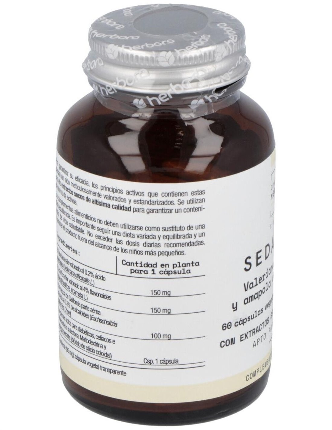 HERBORAComplemento alimenticio en forma de cápsulas, que está indicado para ayudar a conciliar el sueño y ayudar a la relajación en situaciones de nerviosismo o estrés. Contiene una fórmula a base de tres extractos de plantas, amapola de California, valeriana y pasiflora.