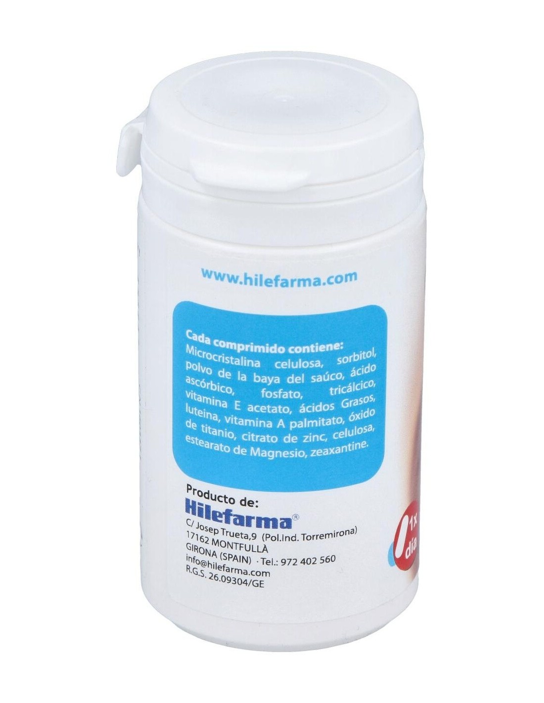 Microcristalina celulosa, sorbitol, polvo de la baya del saúco, ácido ascórbico, fosfato, tricálcico, vitamina E acetato, ácidos Grasos, luteina, vitamina A palmitato, óxido de titanio, citrato de zinc, celulosa, estearato de Magnesio, zeaxantine.