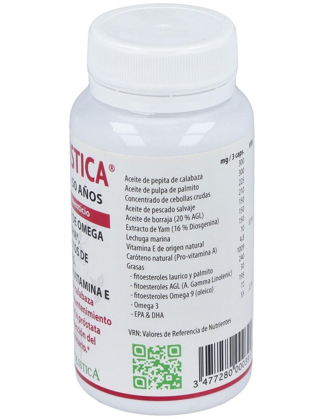 Complemento alimenticio indicado para hombres de 50 años en adelante. Supone un aporte nutricional a la vitalidad masculina. Especialmente rico en Vitamina E para ayudar a proteger las células del estrés oxidativo.