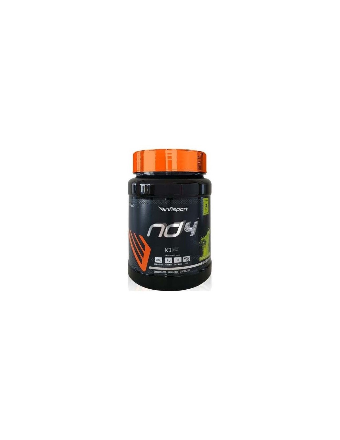INFISPORTND4® combina distintos tipos de carbohidratos en ratio 2:1 glucosa: fructosa, aminoácidos BCAA´S (100% Ajinomoto Co.) en proporción 6:1:1, L-glutamina (Kyowa Quality®) y electrólitos. Su matriz de carbohidratos en proporción 2:1 glucosa vs fructosa, permite una oxidación más alta por unidad de tiempo. Cada servicio aporta 30 gramos, facilitando distintas combinaciones para alcanzar los 60 y 90 g/hora. Incorpora aminoácidos de alta calidad para deportistas que practican deportes de larga distancia o interválicos de alta intensidad: 2 g de BCAA´S en proporción 6:1:1 (100% Ajinomoto Co.) y 1 g de L-glutamina (Kyowa Quality®) por servicio. Contiene magnesio y vitamina B6 que favorece la disminución del cansancio y la fatiga. Su aporte en vitamina C, B1, B2 y B6 contribuye al metabolismo energético normal. También incorpora selenio y vitamina C y E que contribuyen a la protección de las células frente al daño oxidativo. Una vez reconstituido en agua, ND4® es una solución isotónica.
