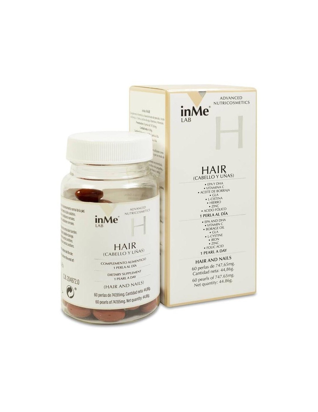 INME LABOfrece una amplia y completa mezcla de principios activos que contienen ácidos grasos procedentes de pescado (DHA y EPA) y aceite de borraja (GLA), L-Cisteína y vitaminas y minerales que contribuyen al normal mantenimiento de cabello y uñas: la vitamina C contribuye a proteger a las células del daño oxidativo. El zinc contribuye a mantener cabello, piel y uñas en condiciones normales. La biotina ayuda al normal mantenimiento del cabello.
