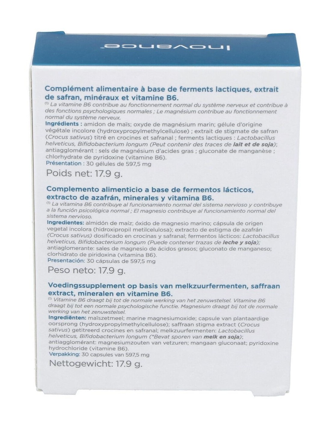 Además, Probiovance S3 30 Comp contribuye a corregir la alteración de la microbiota y la pared intestinal, limitando las reacciones y cambios que acaban por producir trastornos nerviosos.