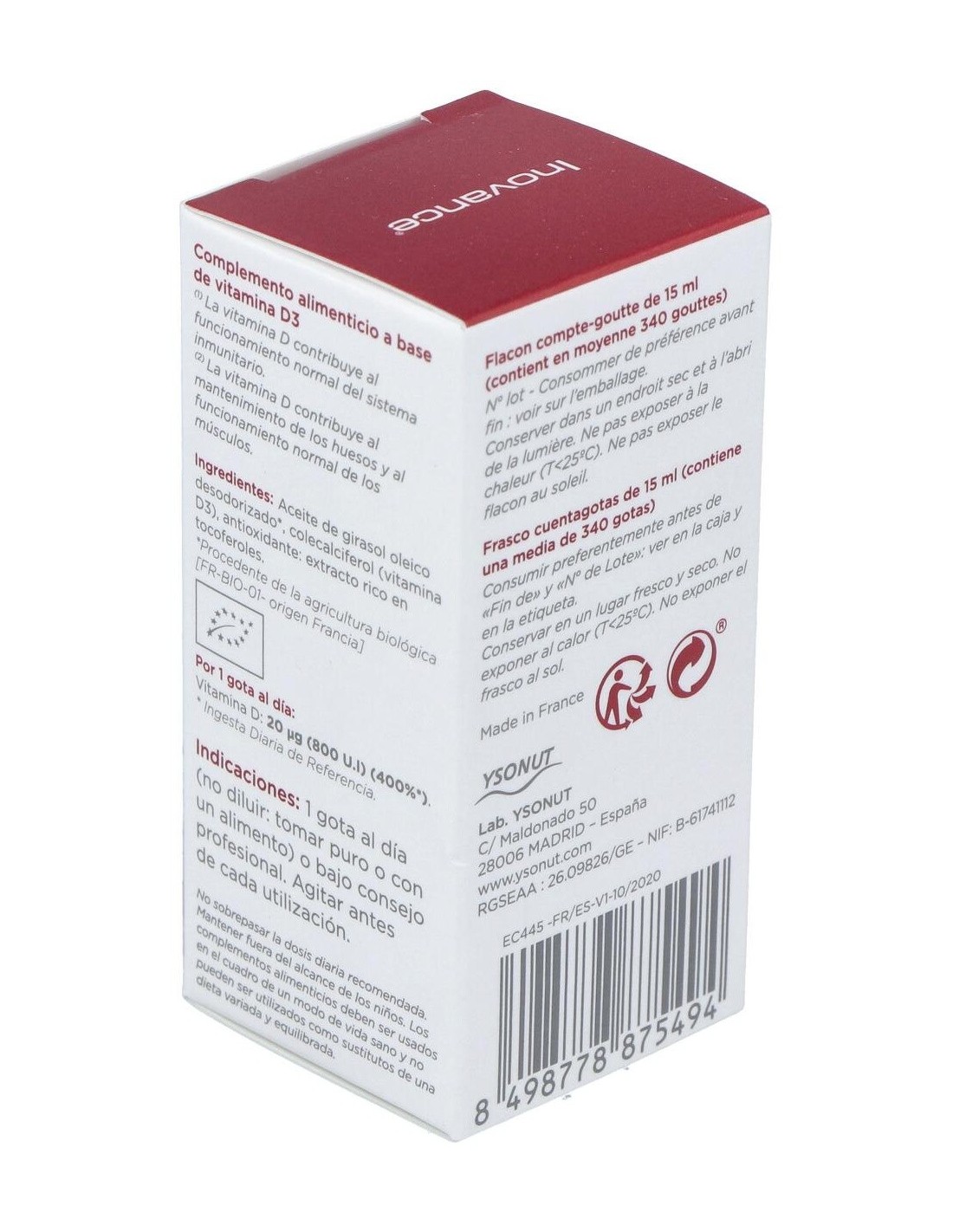 Aceite de girasol oleico desodorizado*, colecalciferol (vitamina D3), antioxidante: extracto rico en tocoferoles.