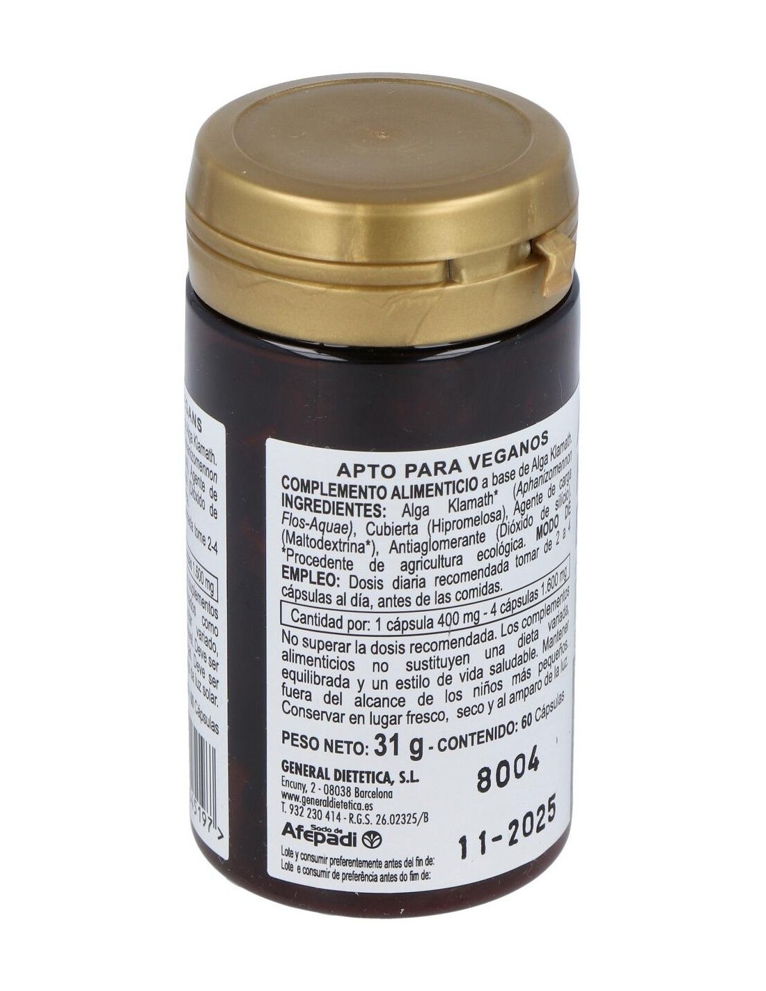 Alga Klamath ecológica............ 1600 mg