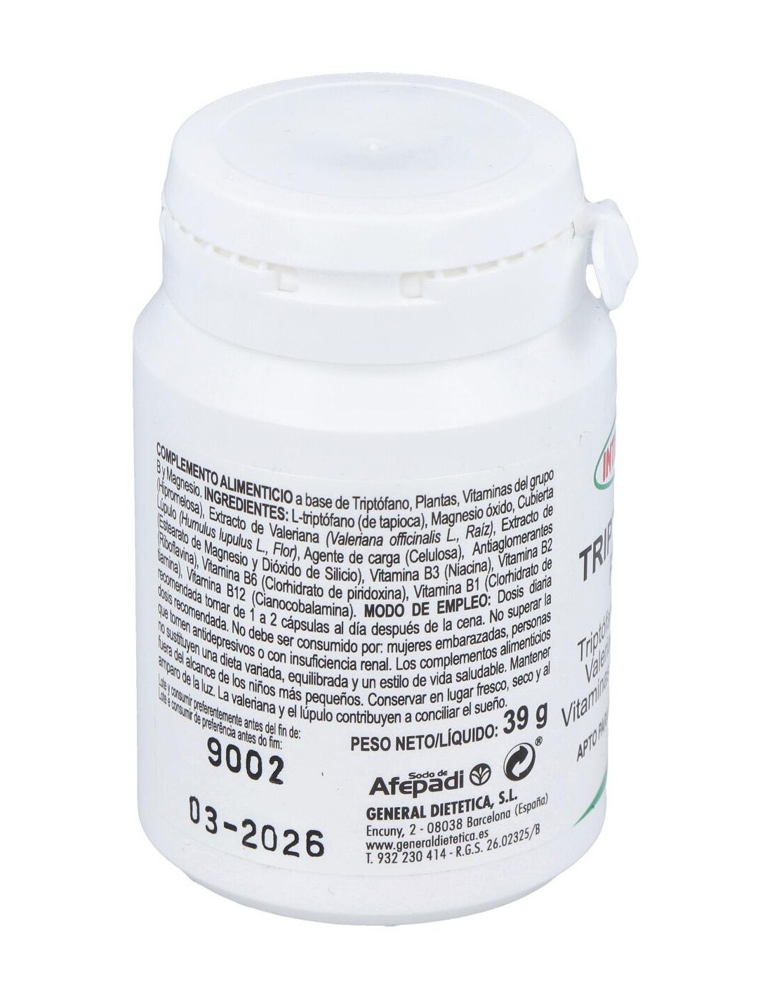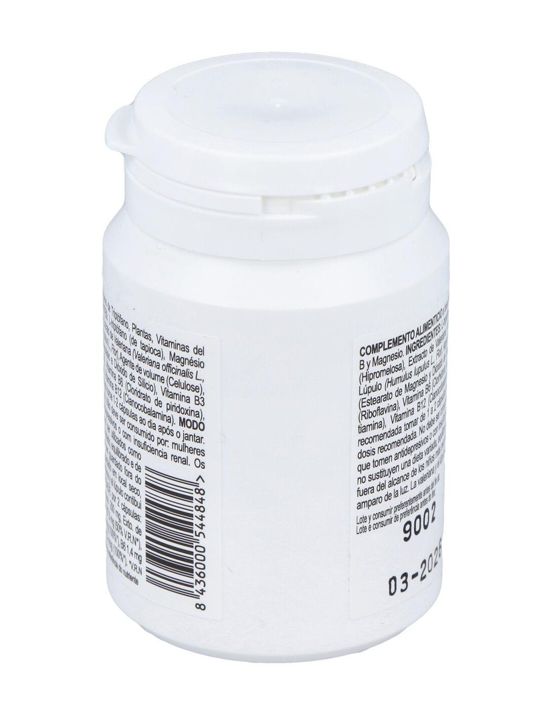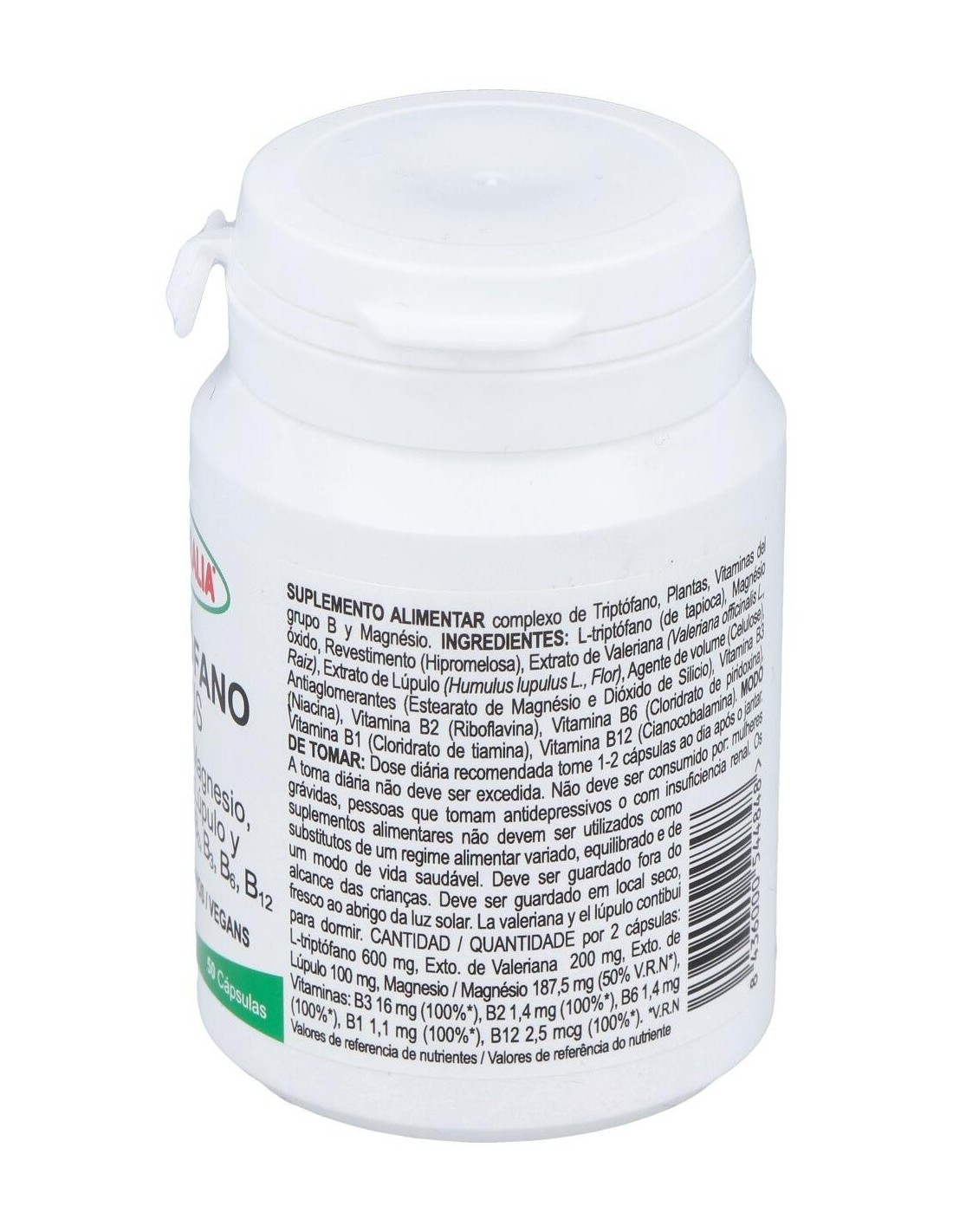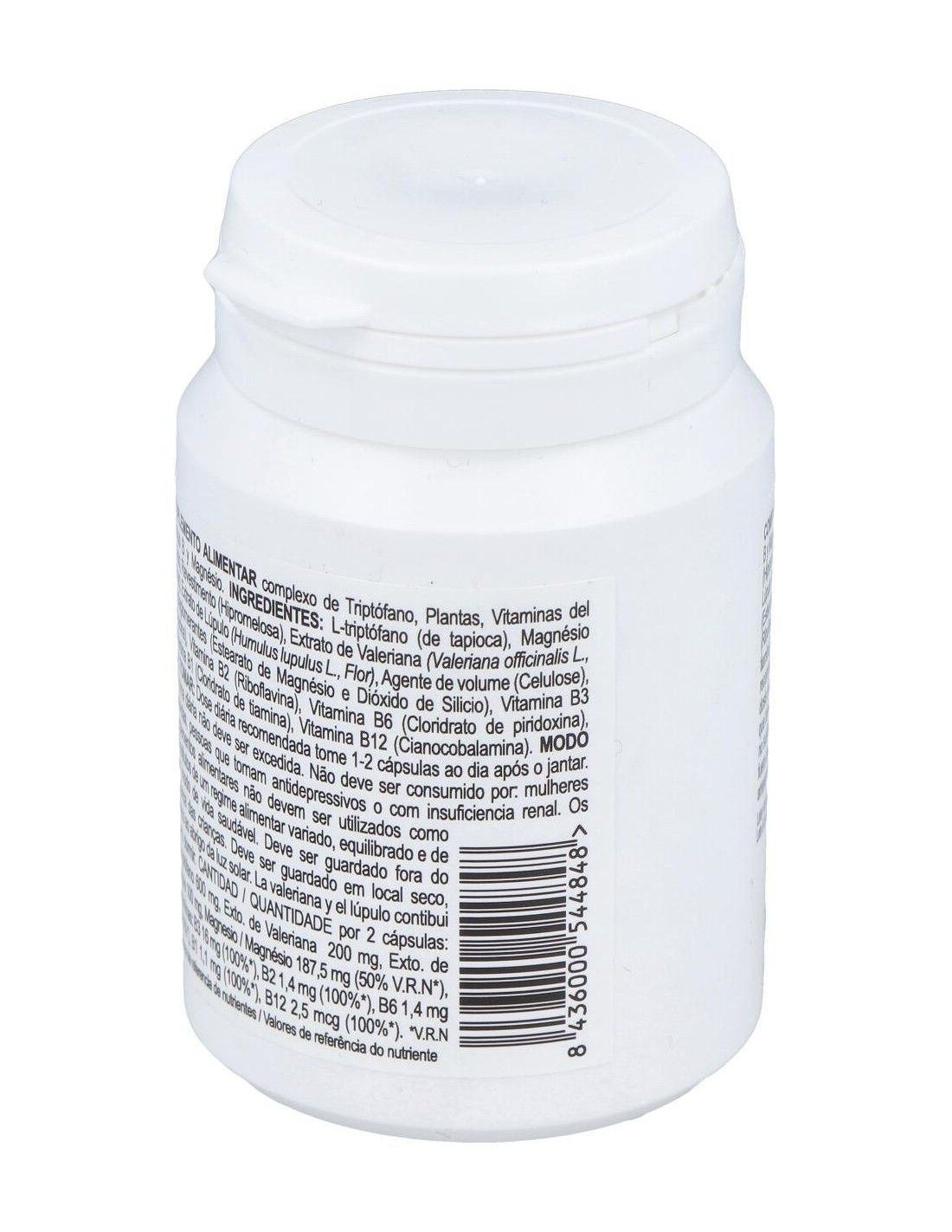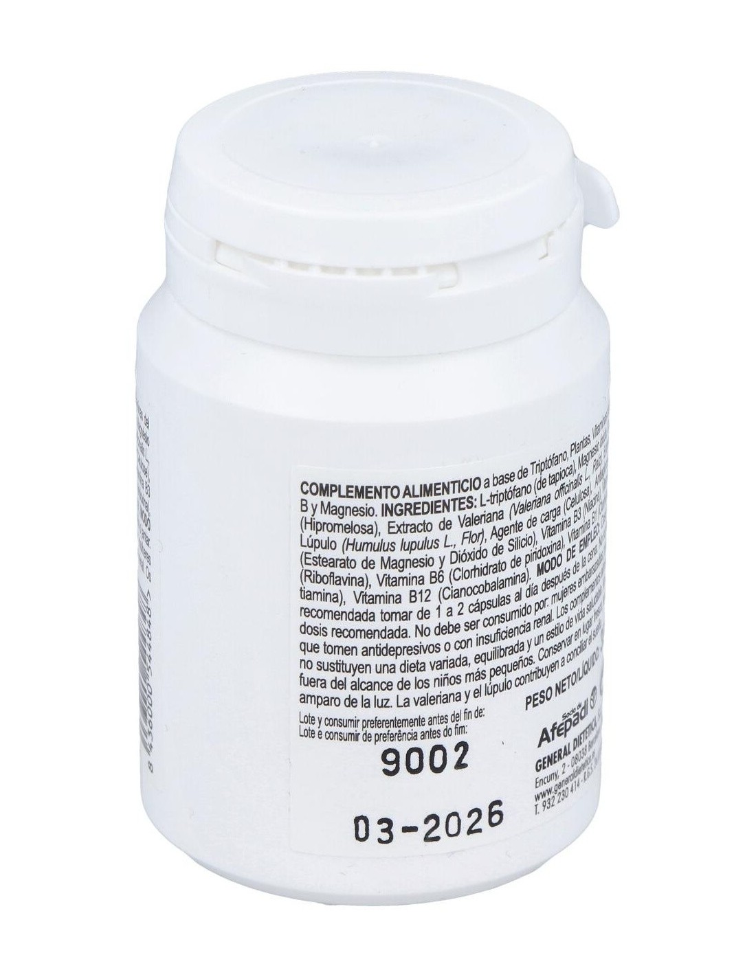 Sinergia de L-triptófano, magnesio y vitaminas del grupo B, que contribuyen al normal mantenimiento del sistema nervioso. Además, contiene plantas de propiedades relajantes como la valeriana.