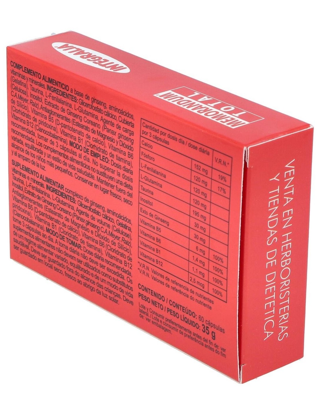 Cápsulas para la mejora del sistema cognitivo. Integralia Memorandum es un producto que contiene 60 cápsulas en el empaque. Promueve la concentración y el correcto funcionamiento de las habilidades intelectuales. Fomenta la memoria a largo y corto plazo. Funciona como una herramienta para la realización de tareas bajo presión. Aumenta la actividad cerebral con relación a las tareas específicas de larga duración. Ayuda a la toma de decisiones de forma rápida. Está recomendado para personas en entornos de trabajo exigentes. Se sugiere su uso a personas con problemas de concentración o desórdenes de déficit de atención. Útil para estudiantes universitarios. No apto para el manejo de niños y no debe ser consumido por infantes. No se recomienda su uso a personas bajo tratamiento psicoterapéutico. En caso de presentar reacciones adversas a las esperadas, consultar con el médico de inmediato.