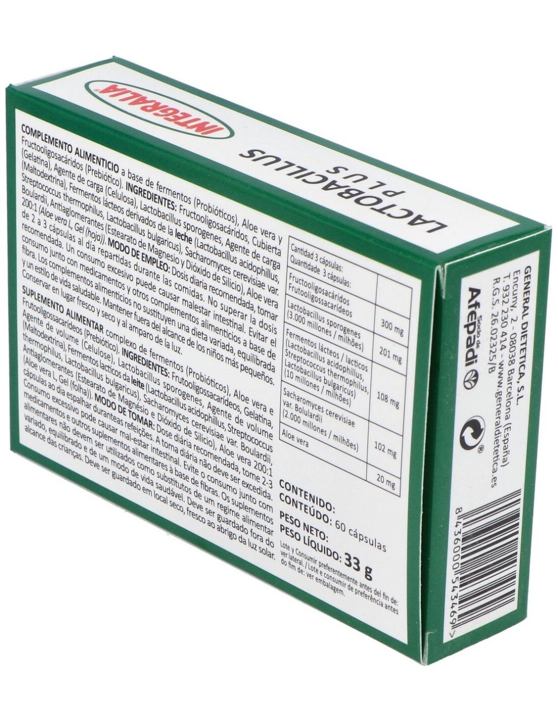 Lactobacillus Plus de Integralia es un complemento nutricional para el confort intestinal, necesario por las diversas cepas de lactobacillus. Además el producto se conforma de fructooligoscáridos y de aloe vera. Que ajustan las labores intestinales naturales y mejoran la digestión. Además sirven como alimento para el aumento y evolución de esta flora intestinal.