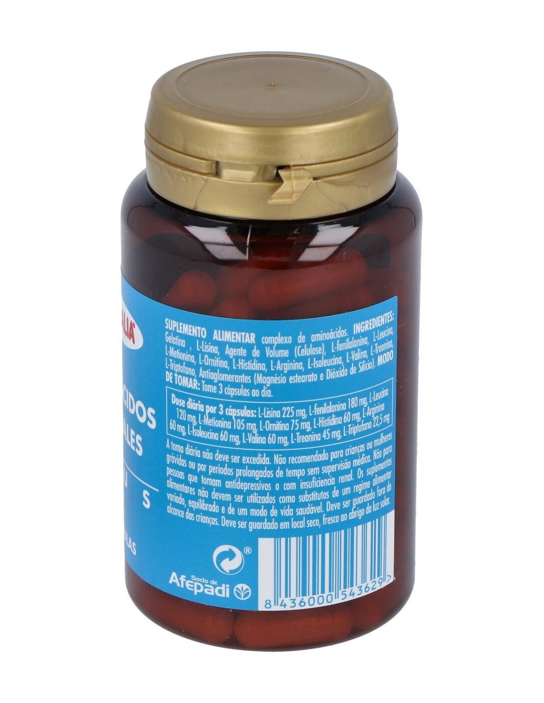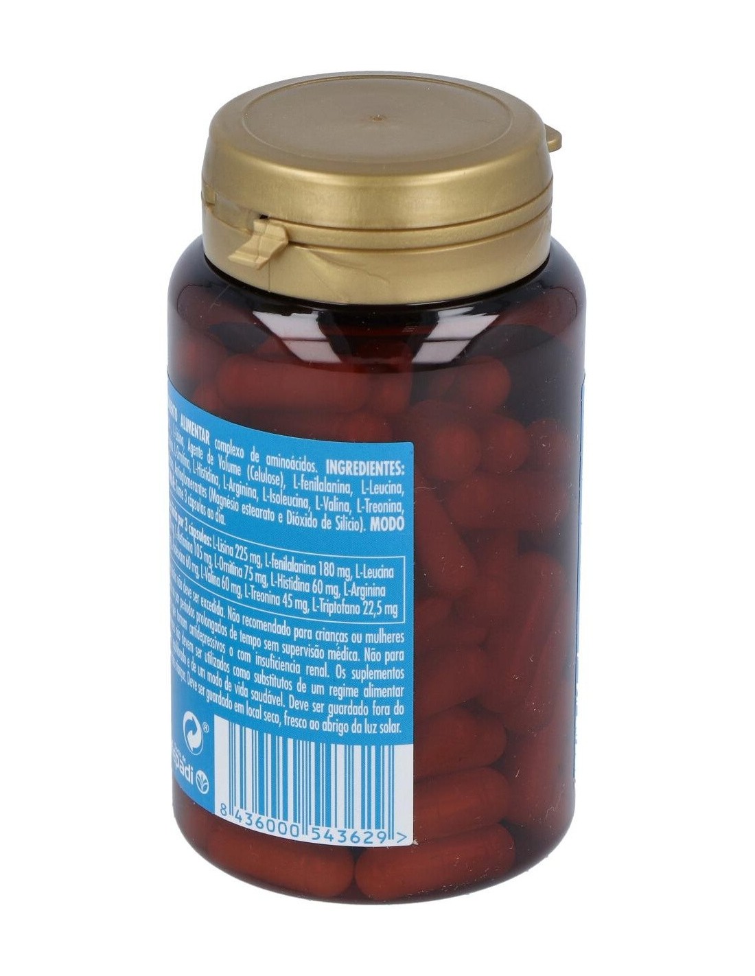 L-Fenilalanina 180 mg, L-Lisina 180 mg, L-Leucina 120 mg, L-Metionina 105 mg, L- Histidina 60 mg, L- Valina 60 mg, L-Isoleucina 60 mg, L-Arginina 60 mg, L- Ornitina 60 mg, L- Treonina 45 mg, L- Triptofano 22, 5 mg.