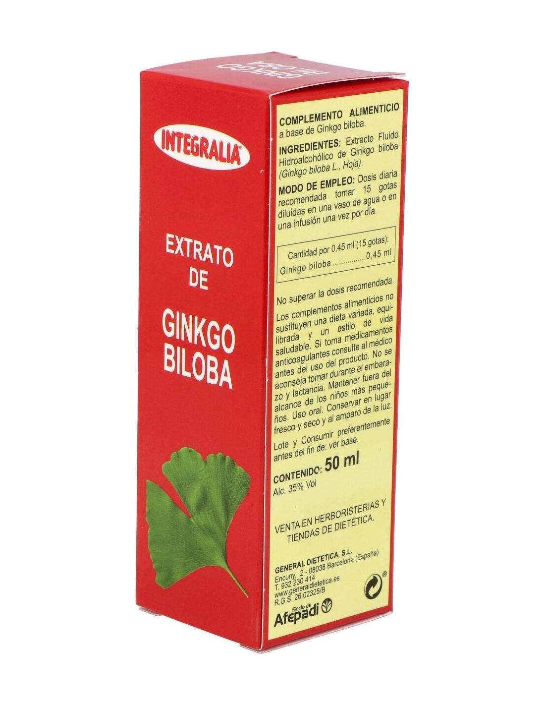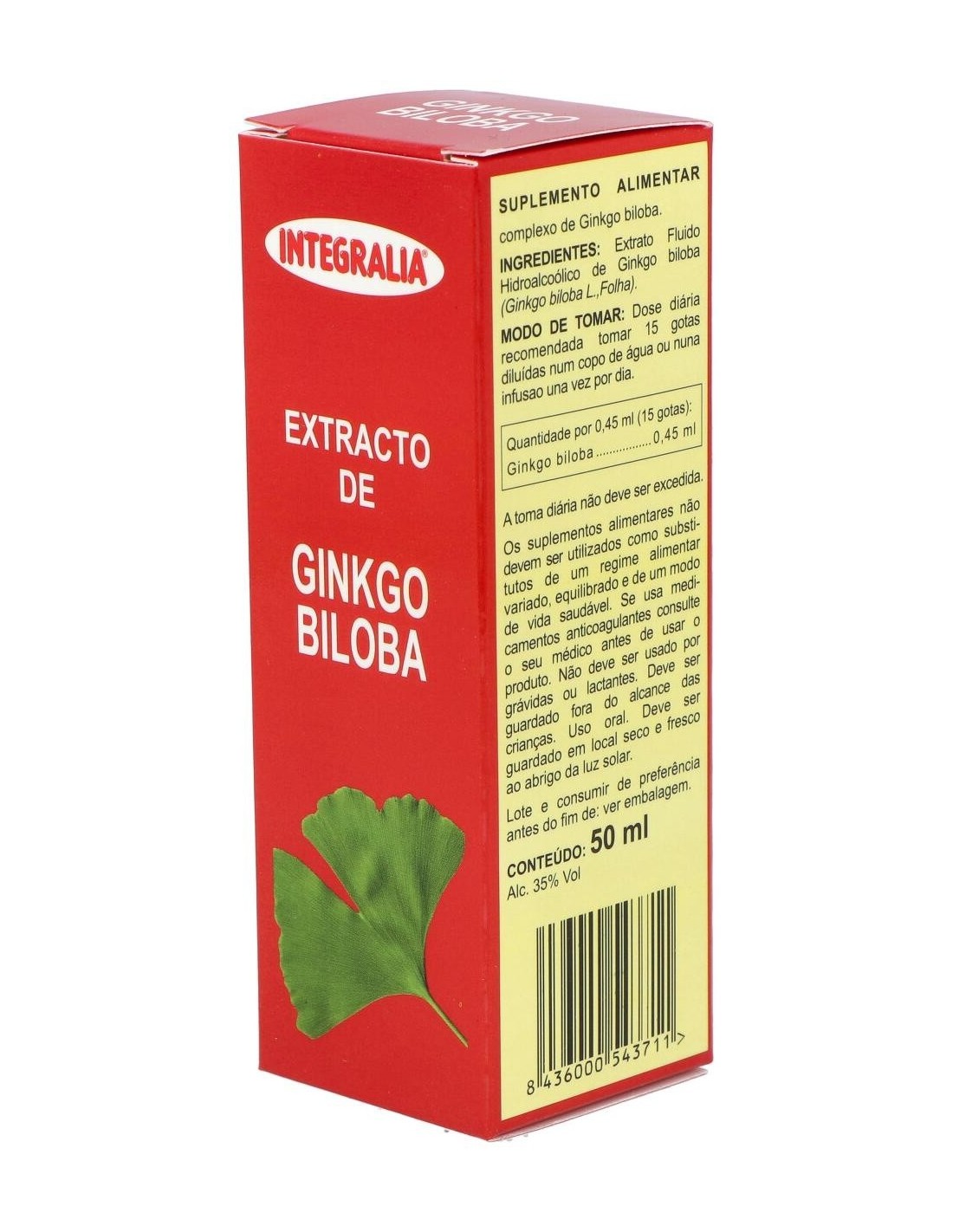 Extracto de ginkgo biloba (nogal de Japón) elaborado por Integralia. Su ingrediente activo con alto contenido de flavonoides ayuda en los tratamientos de trastornos circulatorios relacionados con el envejecimiento, las inflamaciones y los problemas de la piel. Su fórmula de hierbas concentradas está compuesta con la intención de facilitar que se consuma en forma de infusión y que sea de fácil preparación. La dosis recomendada son 15 gotas al día. Para su ingesta se puede diluir en un vaso de agua, zumo o infusión. Si se encuentra bajo tratamiento médico consulte a un especialista antes de consumir este producto. No se recomienda su consumo durante el embarazo o la lactancia. Coloque el recipiente correctamente cerrado en un lugar libre de humedad y sin exceso de luz. Manténgase alejado del alcance de los niños.
