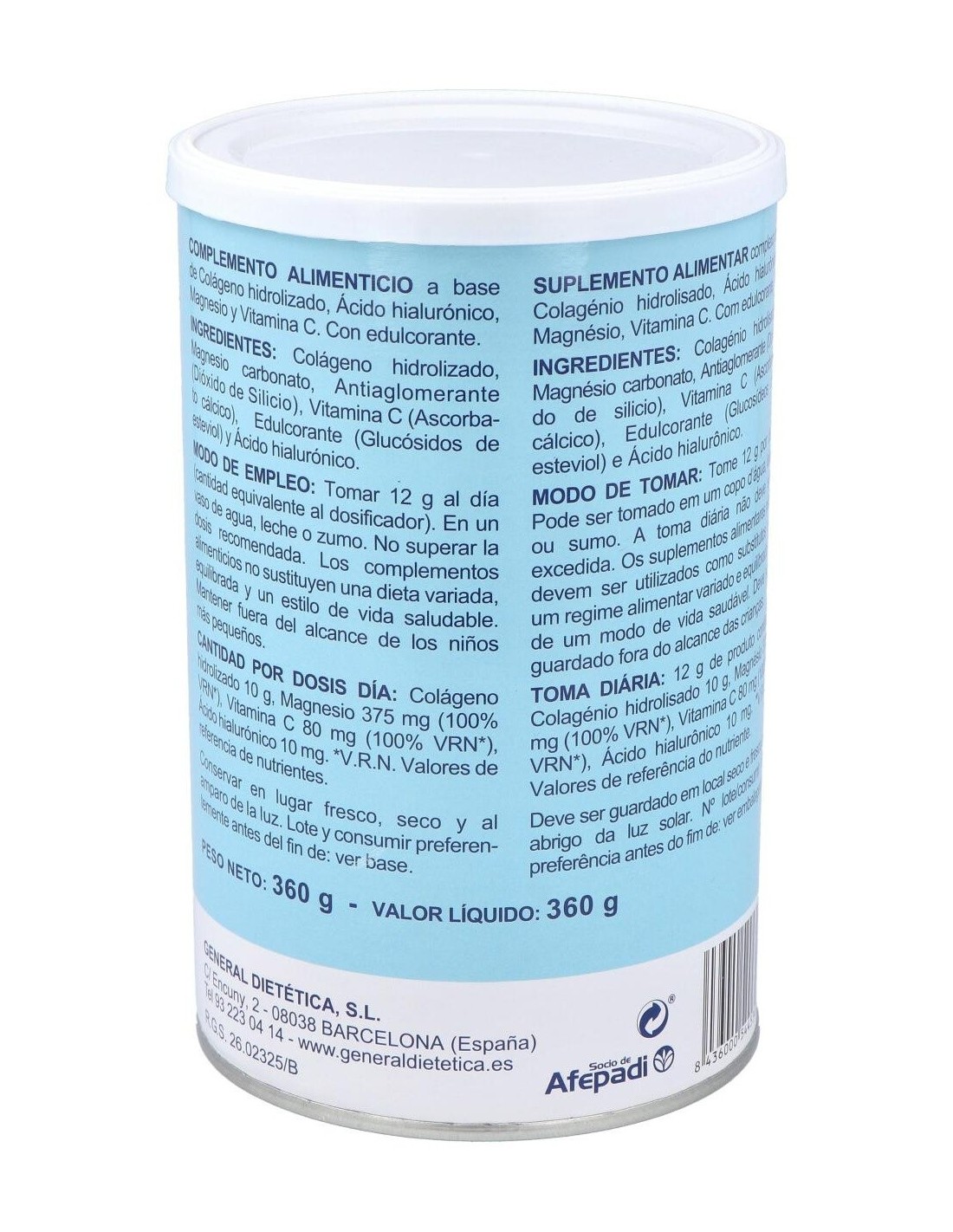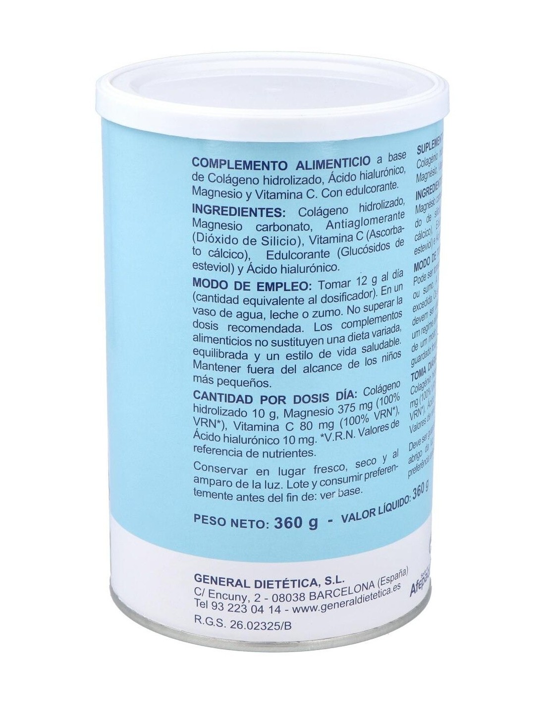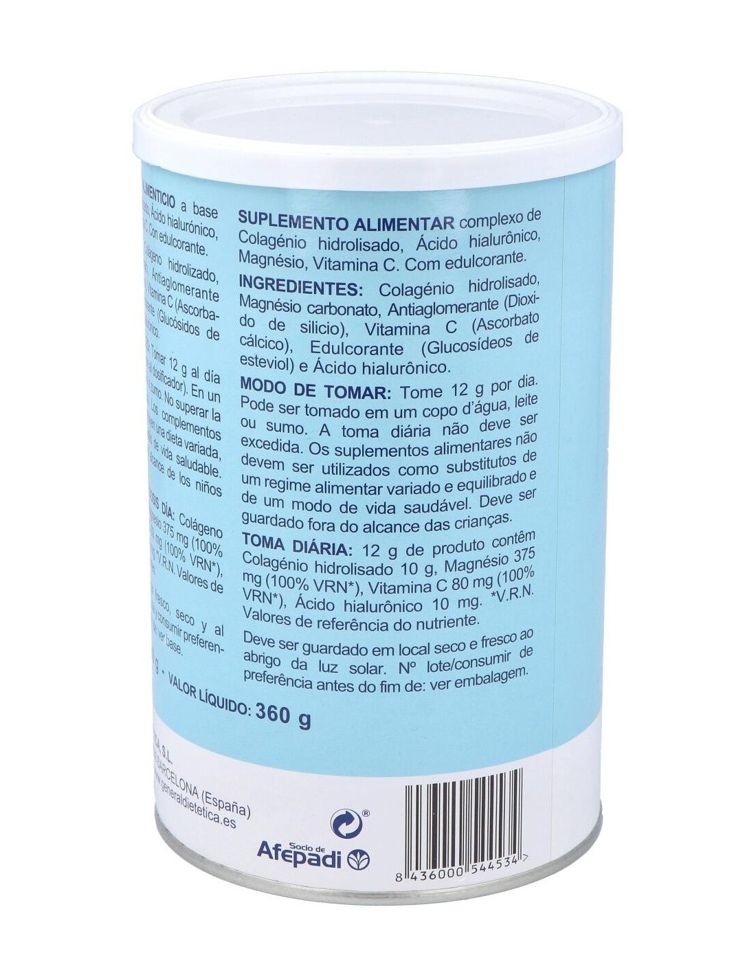 COLÁGENO HIDROLIZADO 10 G, MAGNESIO 375 MG, VITAMINA C 80 MG Y ÁCIDO HIALURÓNICO 10 MG.