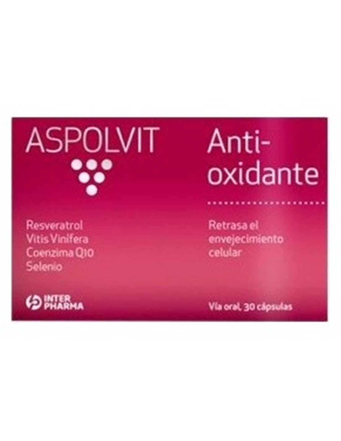 INTERPHARMACada cápsula de ASPOLVIT® Antiox Forte contiene 5 potentes antioxidantes con diversas propiedades asociadas: resveratrol, coenzima Q10, vitaminas C y E, y selenio. También contiene vitamina B12, hierro y ácido fólico para incrementar aún más los beneficios. Producto apto para veganos.