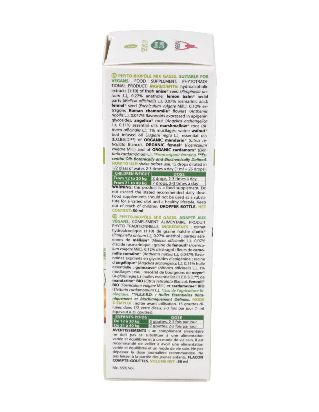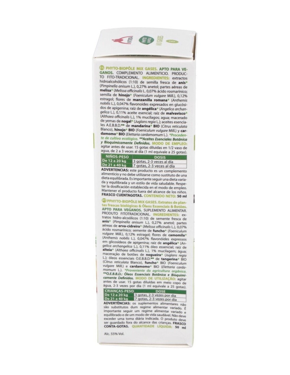 Phyto-bipole Mix-gases (vientre Plano) 50ml es un complemento alimenticio que contribuye a la eliminación de gases ayudando a conseguir ese vientre plano gracias a su excelente formulación a base de extractos combinados de plantas, yemas y aceites esenciales.