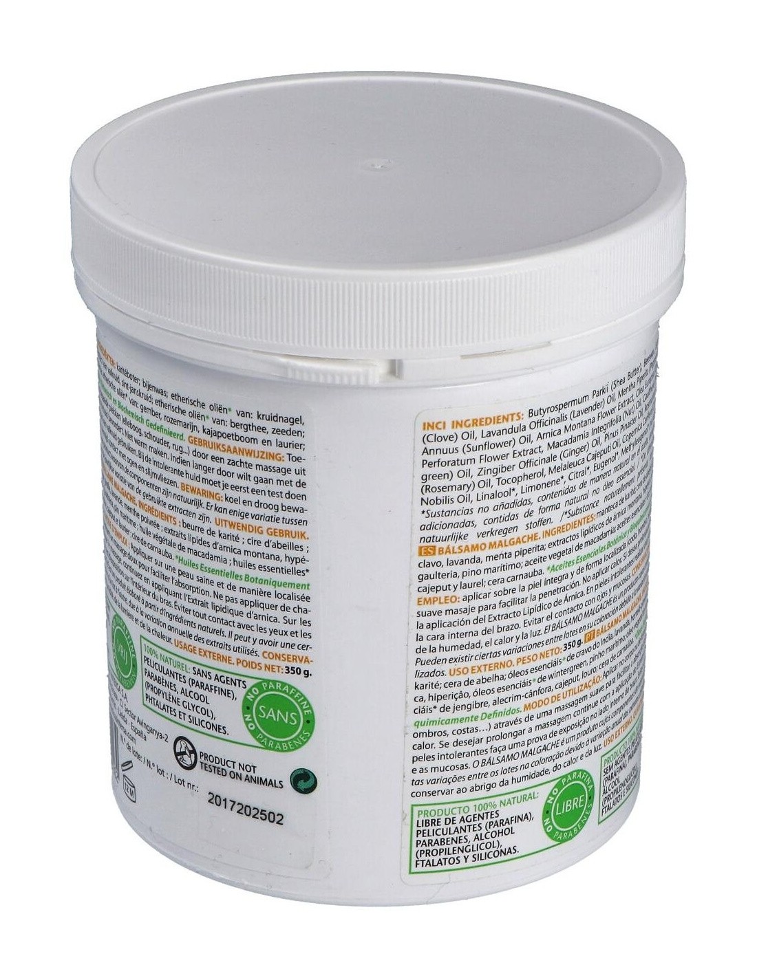 Butyrospermum Parkii (Shea Butter), Beeswax, Eugenia Caryophyllata (Clove) Oil, Lavandula Officinalis (Lavender) Oil, Mentha Piperita (Peppermint) Oil, Helianthus Annuus (Sunflower) Oil, Arnica Montana Flower Extract, Olea Europea (Olive) Oil, Hypericum Perforatum Flower Extract, Macadamia Integrifolia (Nut) Oil, Gaultheria Procumbens (Wintergreen) Oil, Zingiber Officinale (Ginger) Oil, Pinus Pinaster Oil, Rosmarinus Officinalis - Canfor (Rosemary) Oil, Tocopherol, Melaleuca Cajeputi Oil, Copernica Cerifera (Carnauba) Wax, Laurus Nobilis Oil, Linalool, Limonene, Citral, Eugenol, Methyleugenol (no sobrepasa el 0,002%).