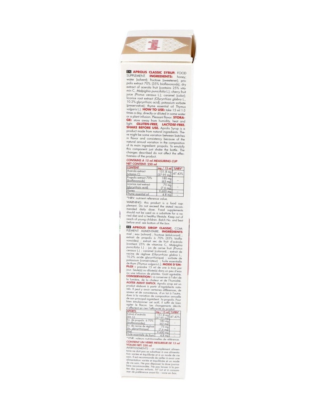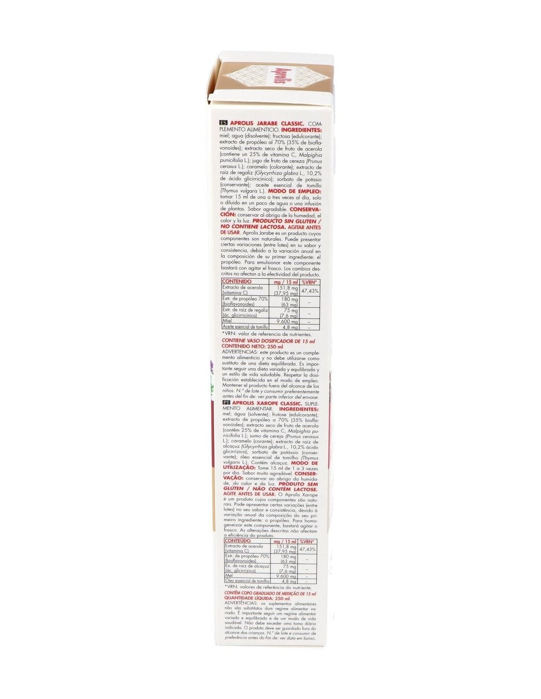 Aprolis Jarabe 250ml es un complemento alimenticio a base de miel, propólis, acerola y extractos de plantas indicado en casos de infecciones, catarros, gripes, tos, expectoraciones, sinusitis, otitis, faringitis, amigdalitis, laringitis o afonía, enfisema pulmonar, bronquitis agudas y crónicas, asma bronquial. Asimismo, ayuda a combatir el resfriado, alergias estacionales y perennes.